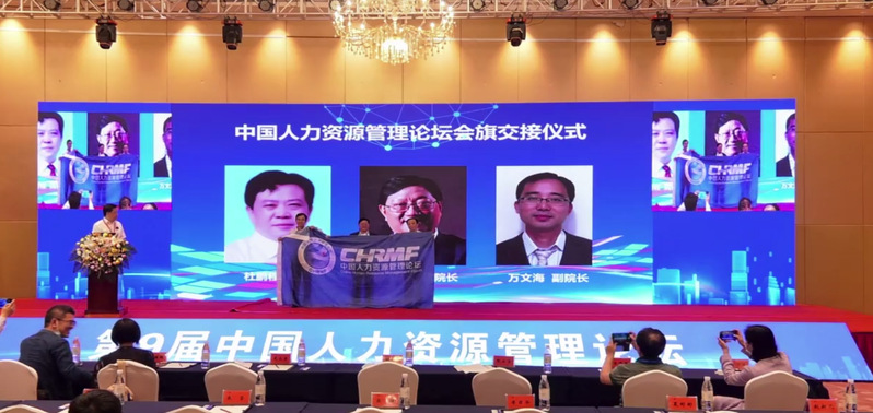 颁奖仪式结束后,第10届中国人力资源管理论坛承办方、华侨大学工商管理学院副院长万文海教授发表专题宣讲。赵曙明教授、杜鹏程教授和万文海教授参加了论坛会旗交接仪式。