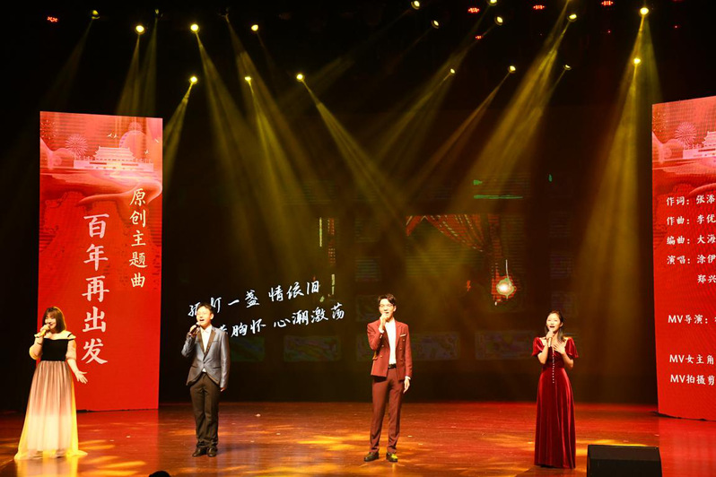 学生原创主题曲《百年再出发》拉开了汇演的序幕。此首主题曲为献礼建党百年而做,曲风大气、旋律悠扬,作曲、作词、MV视频均由青年学生原创,现场唱响了青年学生秉承前辈志向,不忘初心、砥砺奋进,“百年再出发”的时代主题。