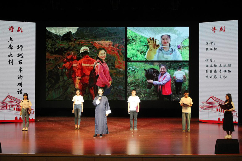 舞蹈《奔跑的青春》用活力四射的舞步踩着律动的节拍,跳出青春精彩,一齐迈向未来。小品《俺也来直播》聚焦直播带货的新潮流,生动展现了脱贫路上村民和青年学生的创新创造,其幽默的台词、活泼的快板洋溢着满满的正能量。诗剧《与李大钊跨越百年的对话》,以诵读李大钊的《青春》出发,历数了一代代人等青春实践,用最美的诗篇赞美奉献的青春,祝愿“青春之我们铸就青春之中国”。