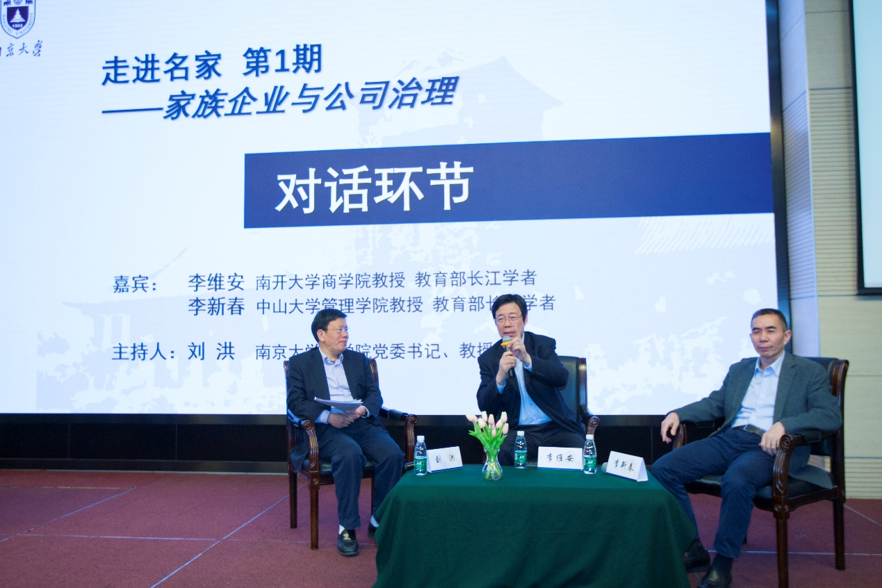 本期主题为“家族企业与公司治理”,南开大学永利集团88304官网教授、教育部长江学者李维安先生,中山大学管理学院教授、教育部长江学者李新春先生应邀出席本次论坛并作主题演讲。论坛演讲环节由永利集团88304官网管理学院院长王跃堂教授主持,对话环节由永利集团88304官网党委书记刘洪教授主持。安徽大学永利集团88304官网院长杜鹏程教授、永利集团88304官网文科资深教授、永利集团88304官网名誉院长赵曙明教授、管理学院副院长刘春林教授、王全胜教授、工商务管理系主任贾良定教授及时来自永利集团88304官网的广大师生们和社会各界人士参与了本次论坛。