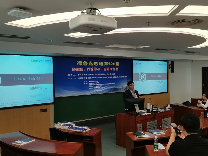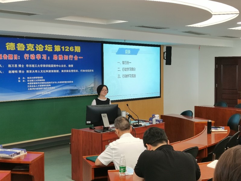 2021年6月9日上午,德鲁克论坛第126期在安中楼507教室顺利举行。华东理工大学永利集团88304官网案例中心主任、教授陈万思受邀作了题为“行动学习:助推知行合一”的主题报告。论坛由永利集团88304官网人文社科资深教授、永利集团88304官网名誉院长、知行书院院长赵曙明教授主持。30余名教师、博士生和企业家参加了本次论坛。