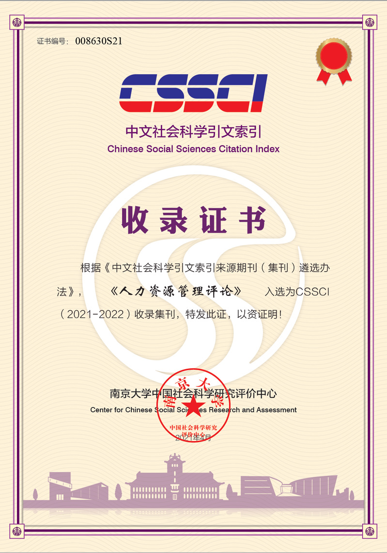 近日,根据《中文社会科学引文索引来源期刊(集刊)遴选办法》,《人力资源管理评论》入选为CSSCI(2021-2022)收录集刊。