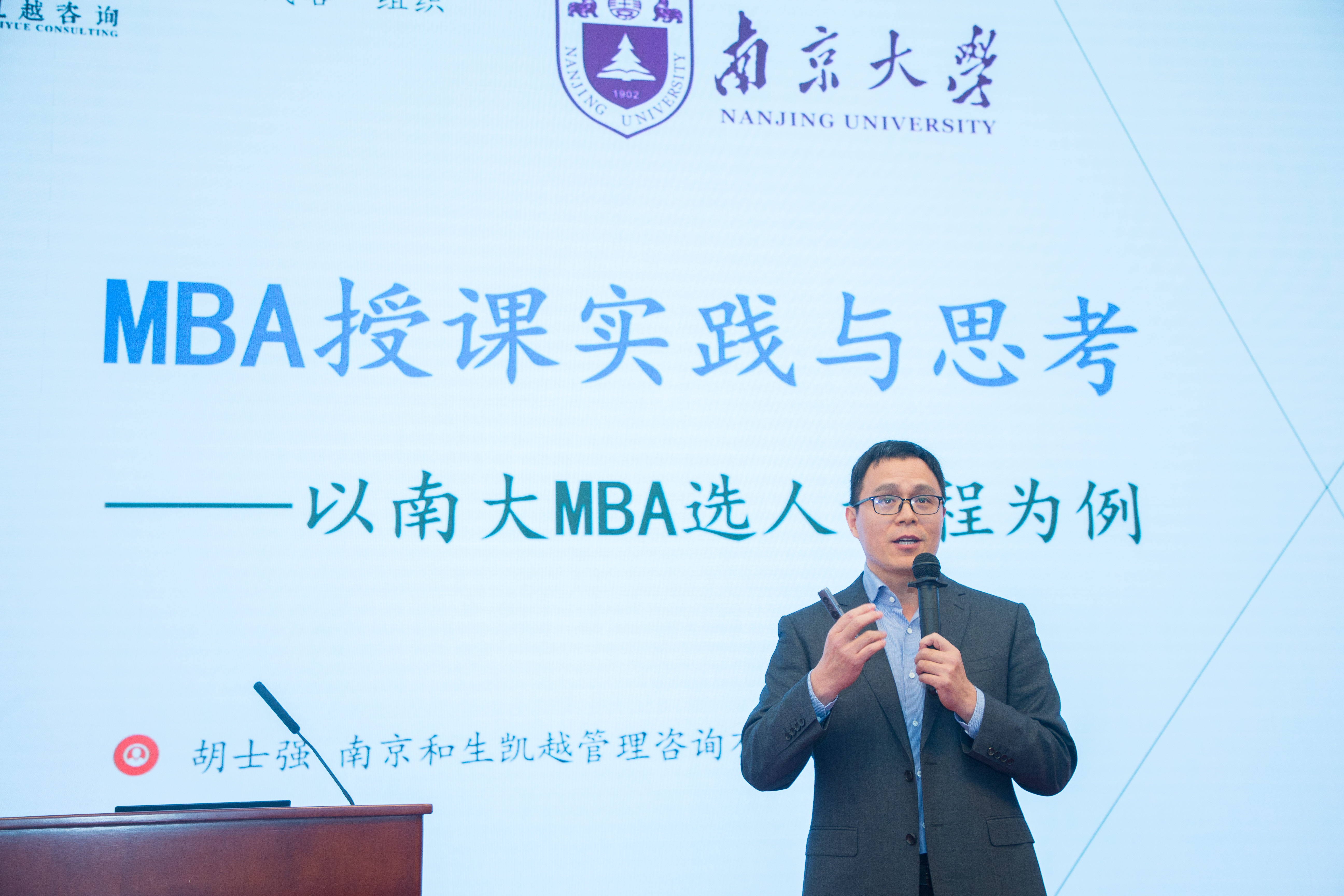 随后,南京和生凯越管理咨询有限公司创始合伙人胡士强博士进行了“MBA授课实践与思考——以南大MBA选人课程为例”主题分享。围绕如何激发MBA学员对课程的注意力,如何将知识分享给MBA学员的问题,胡士强博士分享了从案例到道理到工具再到练习的课堂教学过程,以及提问题、讲故事和埋伏笔三个心得与技巧。