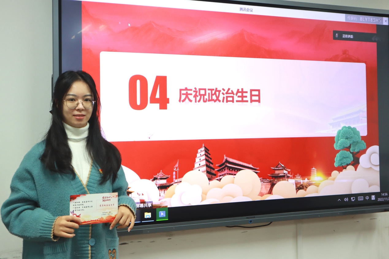 为更好将二十大精神内化于心外化于行,加强党员党性教育,激发党员政治热情,推动学习贯彻党的二十大精神往深里走、往实里走、往心里走,两支部为第四季度入党的11位党员举办庆祝政治生日活动,并赠送党员政治生日卡。文学院2022级硕士生第一党支部李瑞雨表示,党员的政治生命属于党。“政治生日”是党员个体的政治“成人日”“感恩日”。过“政治生日”,在个人维度上,就是为了校准目标、方向、理想,时刻紧绷纪律规矩这根弦,更好地永葆先进性、纯洁性。永利集团88304官网2021级经济硕士党支部刘铭丞表示,希望通过“政治生日”这一政治仪式激励同志们在坚定理想信念,深化理论武装上再下功夫;在立足主责主业,努力科研创新上再下功夫;在开展实习实践,扎根基层奋斗上再下功夫。