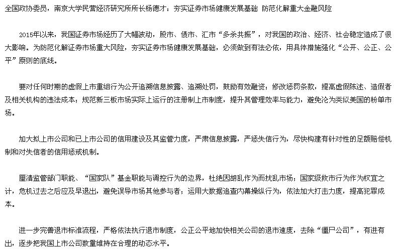 杨教授在发言中指出:2015年以来,我国证券市场经历了大幅波动,股市、债市、汇市“多杀共振”,对我国的政治、经济、社会稳定造成了很大影响。为防范化解证券市场重大风险,夯实证券市场健康发展基础,必须做到有法必依、严刑峻法,用具体措施强化“公开、公正、公平”原则的底线。
