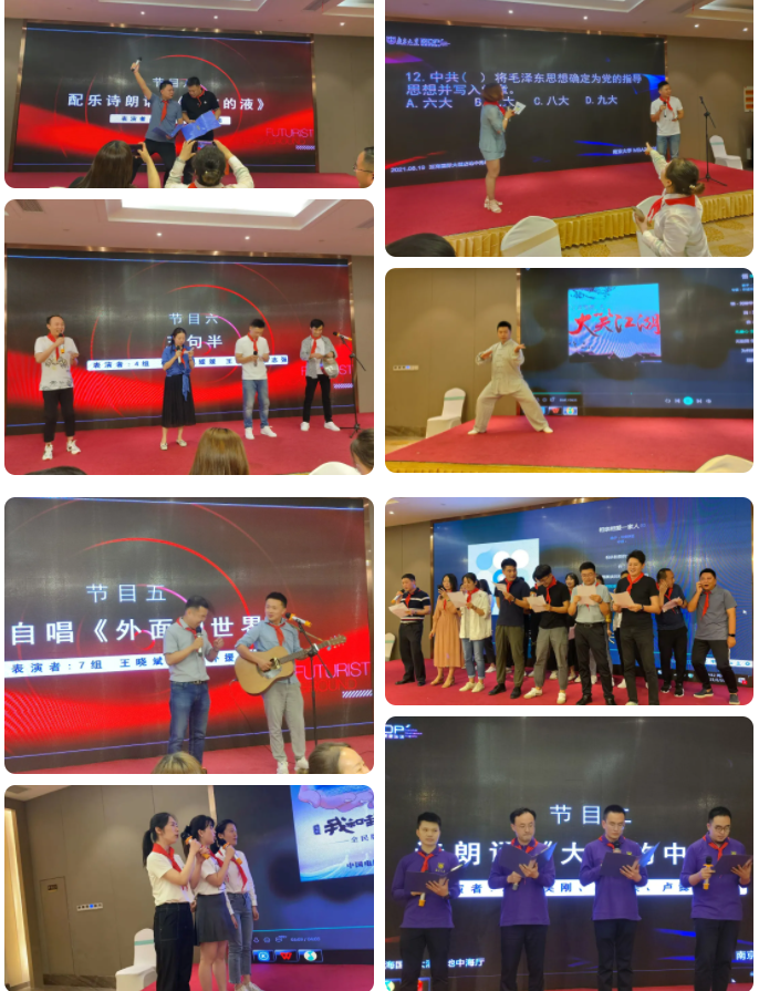 在2021年6月19日的晚上,永利集团88304官网MBA2020级的同学们还在班委的牵头组织下,自发筹备举办了“庆祝建党100周年活动暨M2020班文艺联欢会”。各个小组的同学都积极上台表演,演出节目高达19个。演出形式十分丰富,有朗诵、弹唱、独唱、合唱、三句半、太极拳表演等等。同时,在晚会上还穿插了很多益智性的互动小游戏,使得现场气氛十分热烈。同学们在本次活动中既学习到了党史知识,又增进了友谊,还有了一个展现自我的机会。可以说,本次联欢活动举办的十分的成功。