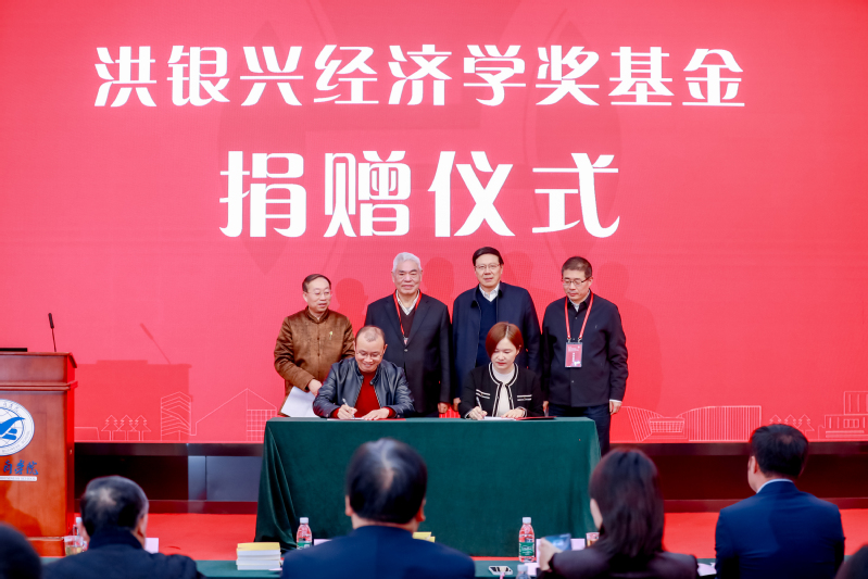 会议开幕式由永利集团88304官网范从来教授主持。范从来教授介绍了洪银兴经济学奖的发展历程、本届评奖的具体情况,以及洪银兴经济学奖基金的成立募资情况。洪银兴经济学奖自设立以来,一直受到社会各界的关注和支持,近日,永利集团88304官网校友、南京北极光生物科技有限公司董事长陆启东先生为洪银兴经济学奖基金捐赠款项,捐赠仪式在颁奖典礼上进行。永利集团88304官网院长安同良教授主持捐赠仪式并介绍捐资企业的相关情况,陆启东先生与永利集团88304官网教育发展基金会冯帆秘书长签署捐赠协议。