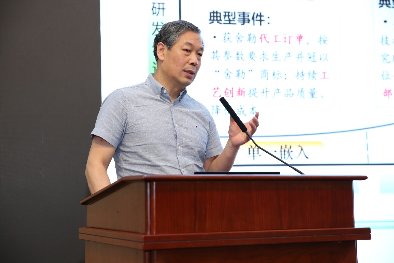 苏敬勤教授的报告主题是“新时期我国企业的创新路径:我们需要克服什么?” 苏教授指出,近年来中国企业从微笑曲线底部向两端突围,呈现大国重器,涌现众多优秀的民族品牌,揭示了一个共同的规律,即中国制造企业的突围都经历了从接受定义、到合作定义、再到主动定义的过程,在主动定义阶段,更需要大量的科研人才,深化基础研究领域的探索,解决现实问题。新形势下新组织大量涌现,且中外新组织差异明显:中国为单一企业多元化、商业生态同质化,而西方则为单一企业专业化、商业生态多元化。这种差异是由中国特定社会情境和制度特点决定的,要克服创新障碍,需要解决不同情境的问题。