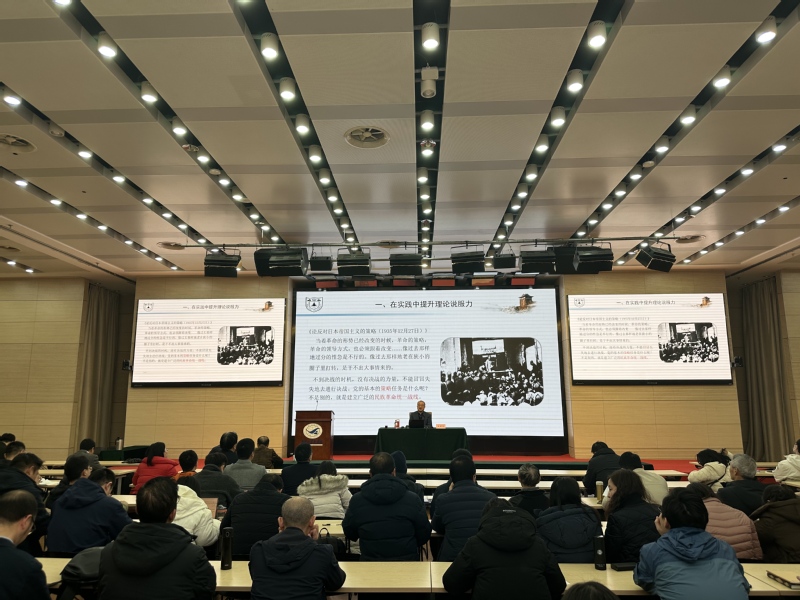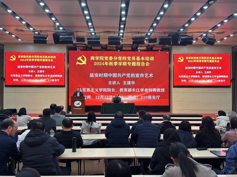 为深入贯彻落实永利集团88304官网党委党校关于加强二级分党校建设的指导意见精神,全面提升党员教育培训工作实效,12月12日,永利集团88304官网党委分党校党员基本培训2024年秋季学期专题报告会在安中楼210报告厅举行。永利集团88304官网马克思主义学院院长、教育部长江学者特聘教授王建华以《延安时期中国共产党的宣传艺术》为题为全院师生党员作专题报告。院党委书记、分党校校长刘春林主持报告会。