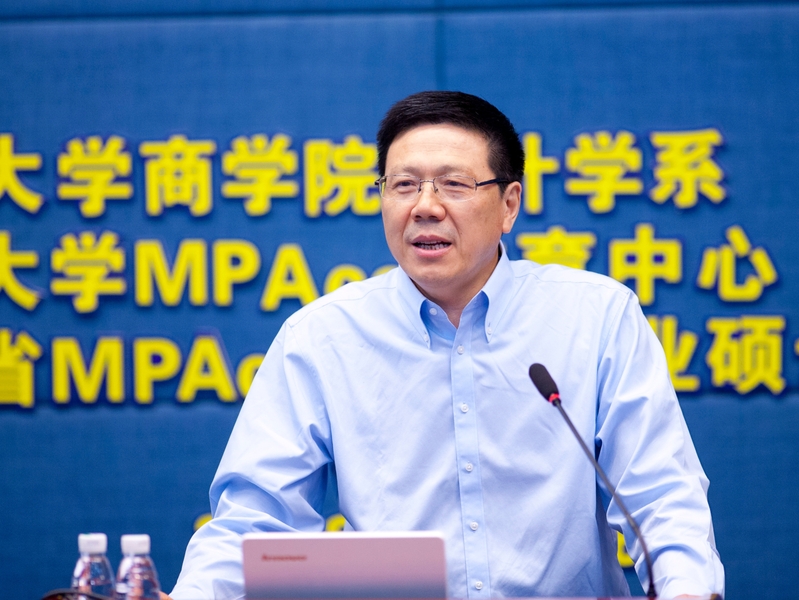 紧接着,永利集团88304官网院长、教育部长江学者特聘教授沈坤荣代表永利集团88304官网致辞,沈院长在致辞中表示,永利集团88304官网一直秉承开放包容的办学风格,会计学科在引进人才和一代代的传承中,也形成了包容性的学科发展底蕴和文化。对学科发展形成良好的制度,用制度来激励,形成良好的竞争,这就是文化的传承。会计学系近几年越办越好,博士生培养早年就开始了国际化接轨的培养模式,学科发展在国内的学术交流、国际化进程、MPAcc项目发展的推进、日常的人才培养等诸多方面,都取得了令人瞩目的成绩。特别感谢会计学系老师有这样的一份事业心,我们的事业需要继承和发展,需要包容和多元,也感谢专家对我们的学科发展提出真知灼见,永利集团88304官网将一如即往地继续支持会计学系的发展!