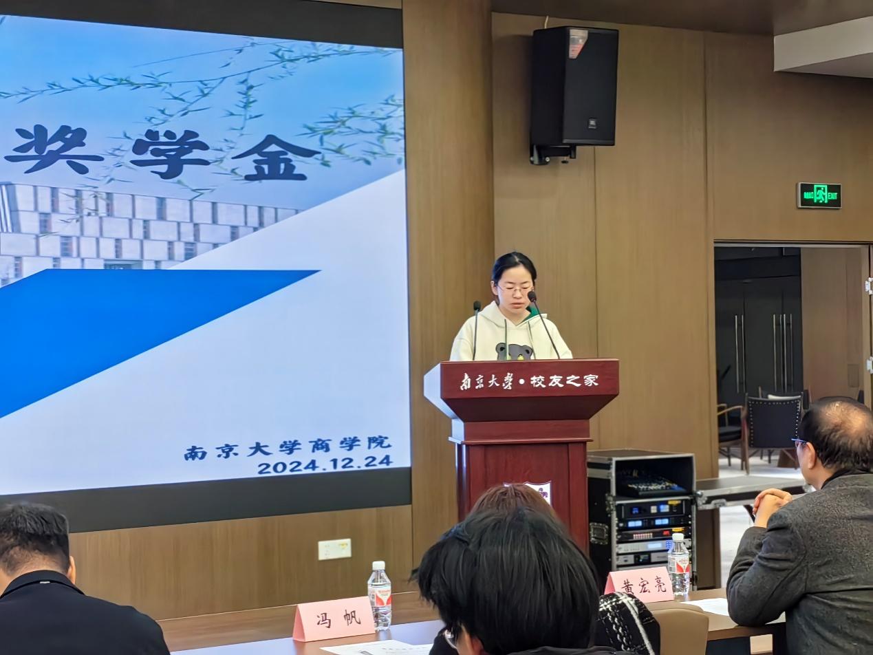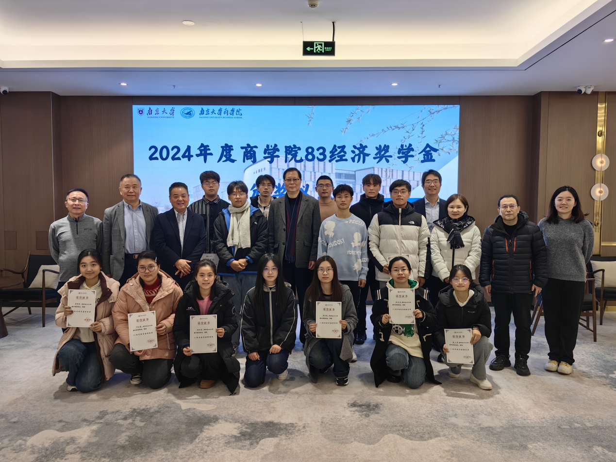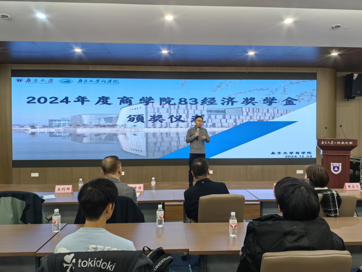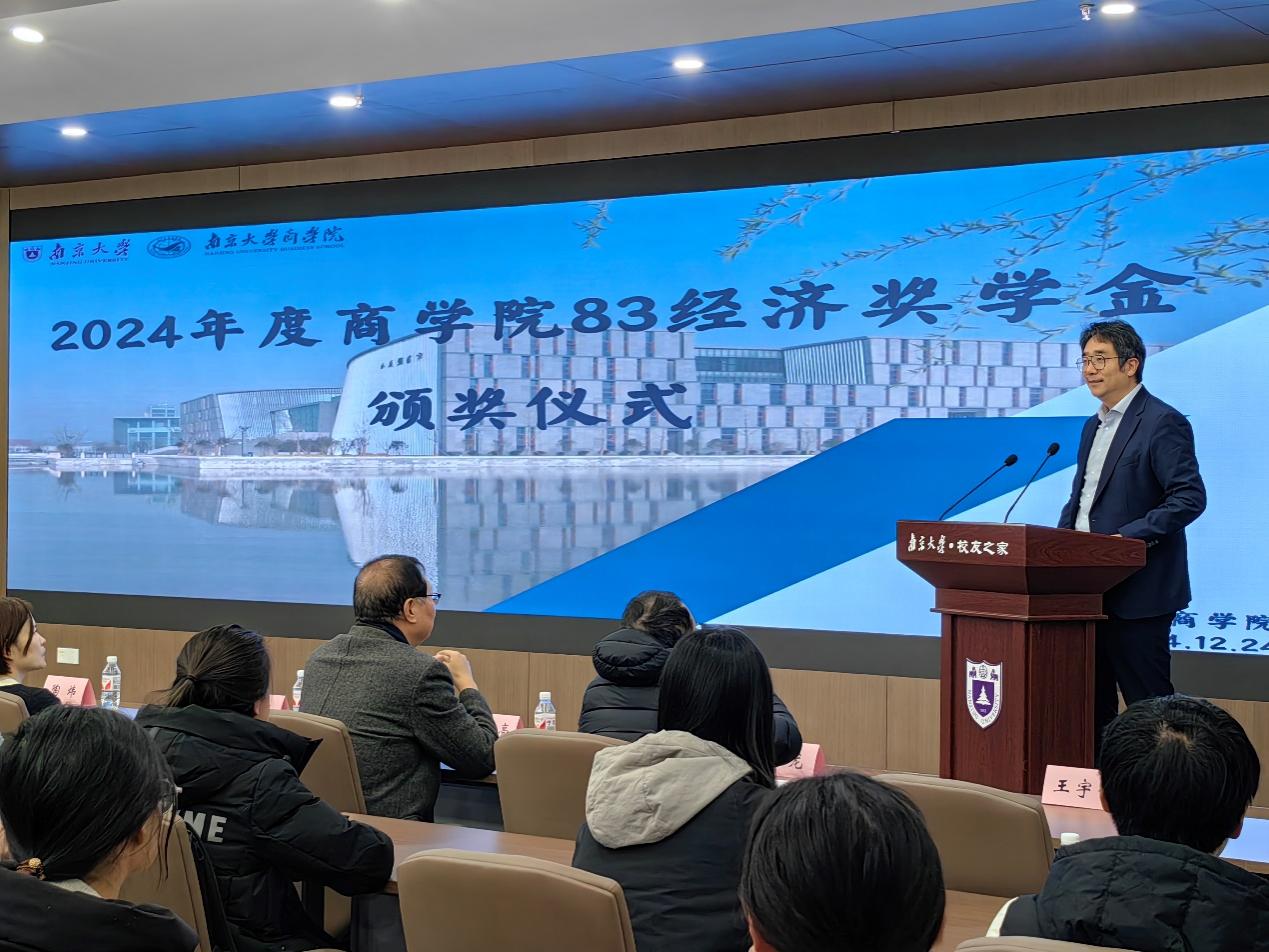 2024年12月24日下午13:00,2024年度永利集团88304官网83经济奖学金颁奖仪式在仙林校区杜厦图书馆校友之家隆重举行。永利集团88304官网校友事务与发展工作处处长、永利集团88304官网校友总会秘书长冯帆教授,83经济奖学金设奖校友代表黄宏亮、陶炜、马步洋、宋利群、季龙共同出席颁奖仪式。仪式由永利集团88304官网党委副书记王宇伟教授主持。