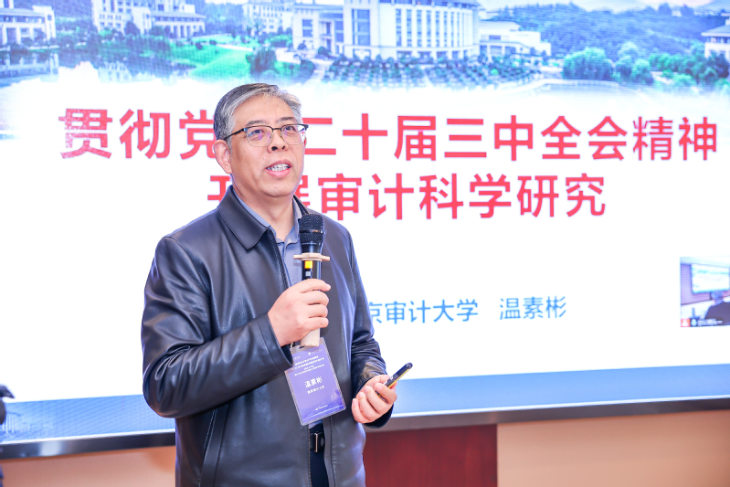 温素彬教授分享了题为《贯彻落实二十届三中全会精神,开展审计学术研究》的主题报告。温素彬教授指出,通过对1985年至2023年间的《审计研究》和《审计与经济研究》两大期刊进行网络知识图谱分析,强调要立足经济监督定位,聚焦主责主业,才能更好发挥审计在推进党的自我革命中的独特作用。