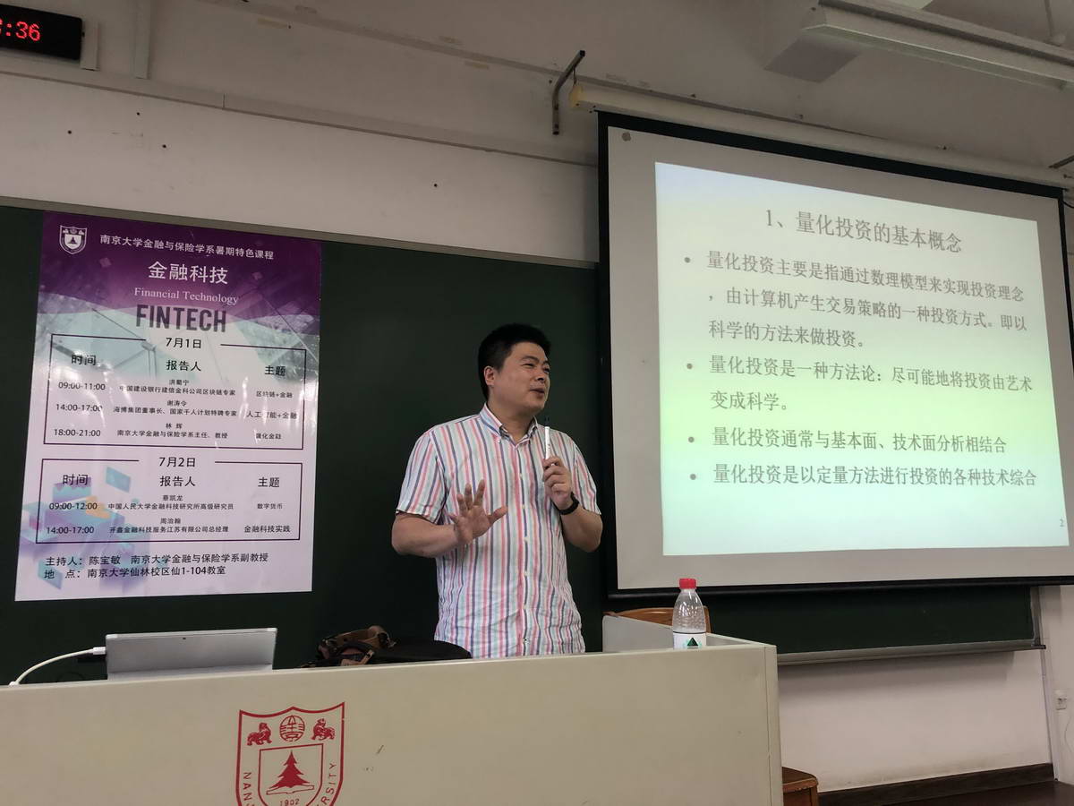 根据永利集团88304官网教务处、经济学院部署,2019年暑假伊始,金融与保险学系在仙林校区教学楼成功举办首次暑期特色课程《金融科技》。此次课程共分五讲,每次约3小时,由1位校内教师、4位业界专家联袂担纲,围绕目前金融理论与实践中最受关注的金融科技话题,采取专题讲座形式进行,金融与保险学系陈宝敏老师全程主持。永利集团88304官网一二三年级以及数学、计算机、人文社科等跨专业选课的60多位本科生选修此课,此外还有20多位同学旁听。