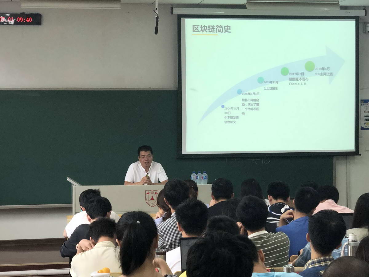 7月1日上午第一讲,建信金科区块链专家洪蜀宁先生首先系统说明了金融科技的定义、历史、特征、内容,为后续课程作了良好的铺垫。接着重点讲述了区块链技术及其在金融业的广泛应用前景,包括数字货币、支付清算、借贷、证券、保险等,揭示了其去中心化、跨行业协作、监管友好等特征,极大地刷新了同学们对金融业的认知。