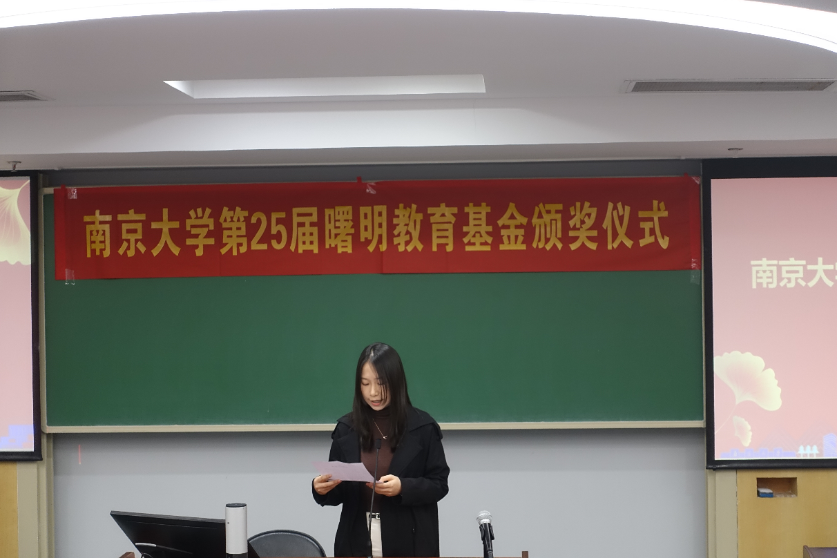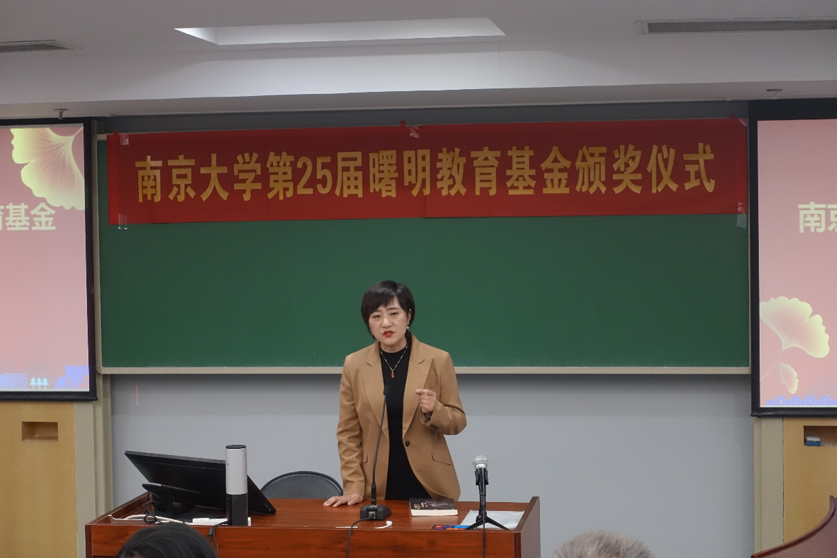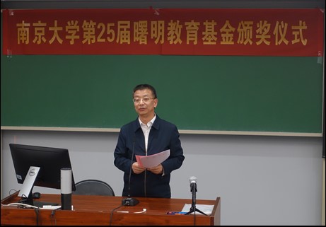 贾良定介绍了曙明教育基金设立者赵曙明的个人经历以及曙明教育基金的设立情况,宣读《关于颁发2022年度曙明奖学金、奖管金、奖教金的决定》。赵曙明为获奖师生颁发证书。