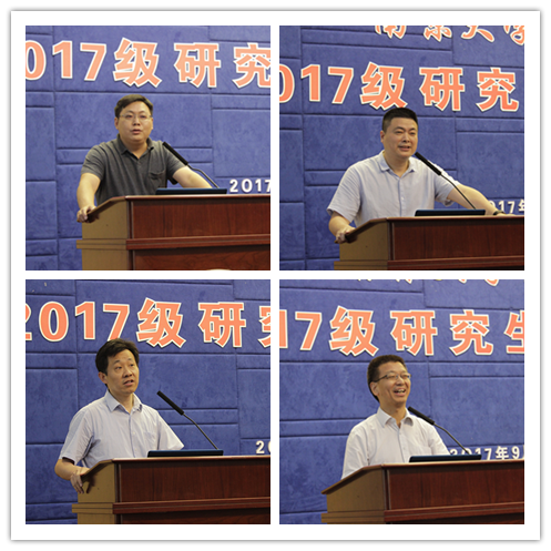 党委刘洪书记以党委书记、研究生导师及学术研究者三重身份和研究生新生谈到了对同学的在做人、做事和做学问的期待;作为导师刘书记倡导大家要珍惜时光,学会规划学业和未来的生活;作为学术研究者,我们要多关注各种学术信息,多看学术论文多思考结合自己的经验开展学术研讨。