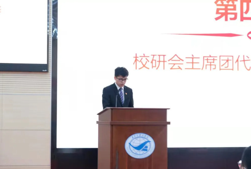 李果代表校研会宣读贺信。随后,大会审议并通过了《大会代表资格审查报告》《院研究生会章程(草案)》《院研究生会主席团选举办法及大会主席团、秘书长人员、总监票人、监票人建议名单》。
