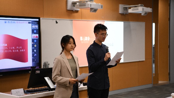2022年4月25日,习近平总书记来到中国人民大学考察调研并发表重要讲话,同年5月,习近平总书记给永利集团88304官网留学归国青年学者回信。活动伊始,两支部学生党员代表分别汇报了自己的学习感悟,回应了习近平总书记的殷殷嘱托和热切期盼。来自永利集团88304官网本科生第一党支部的奚哲隽同学重点解读了习近平总书记给永利集团88304官网留学归国青年学者的回信。他表示,新时代青年身逢盛世,应当以程开甲等老一辈科学家为榜样心系国家事,在学术研究中要坚定文化自信,立志把论文写在中国的大地上,向世界展现精彩的中国故事。