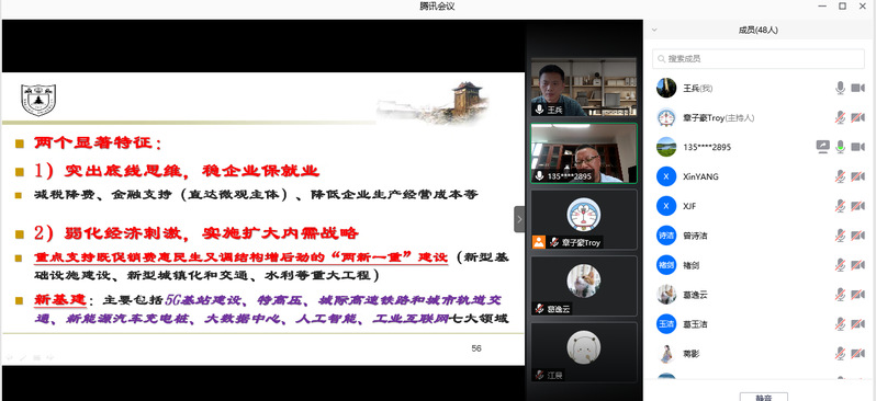 通过本次会议,会计学系教师和研究生党员都受益匪浅,从杨教授生动风趣的讲解中,更加加深了对我国当前经济发展的认识,尤其是对刚刚落幕的“两会”精神和宏观经济形势的理解。并且,本次会议也是会计学系加强党建、丰富组织生活的重要形式,通过在线学习和联合在读研究生党员,并邀请非党员教师和系行政老师一起参与学习,能更好地集中学习,充分领会国家的方针政策,并将相关政策和精神自觉贯彻到工作和学习中去。