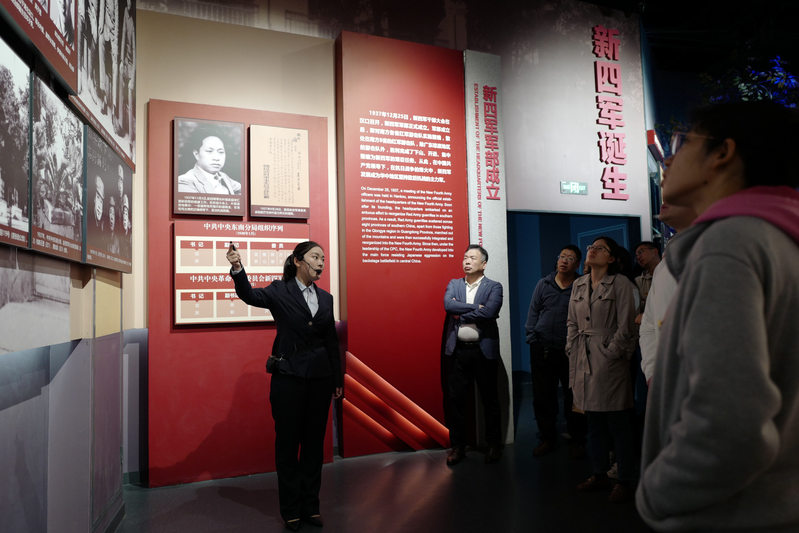 循着习总书记足迹,参访一行人来到新四军纪念馆,体会新四军伟大革命奋斗历史。团队成员在“铁军忠魂”塑像前久久驻足,凭吊铁军将士忠烈英魂;跟随讲解员的生动讲解,身临其境,体悟英雄家国情怀;默念着“吃菜要吃白菜心,当兵要当新四军”的歌谣,感受军民鱼水一般的亲情;在重温入党誓词中,坚定信仰、提升觉悟,传承红色血脉、赓续红色力量。