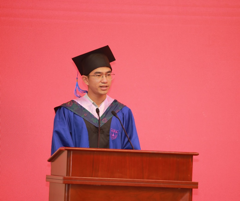 毕业生代表、永利集团88304官网2020届硕士研究生袁振同学回顾了三年的研究生生涯,他表示,南大青年既要有“嚼得菜根”的深沉情怀,更要有“做得大事”的雄伟抱负,祝愿全体毕业生不负初心、笃定前行,同时祝愿学校和学院永铸辉煌。