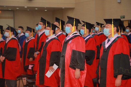 典礼开始,全体师生观看学校主会场毕业典礼直播,起立注视永利集团88304官网国旗护卫队护送中华人民共和国国旗入场。在庄严的国歌声中,毕业典礼正式拉开帷幕。