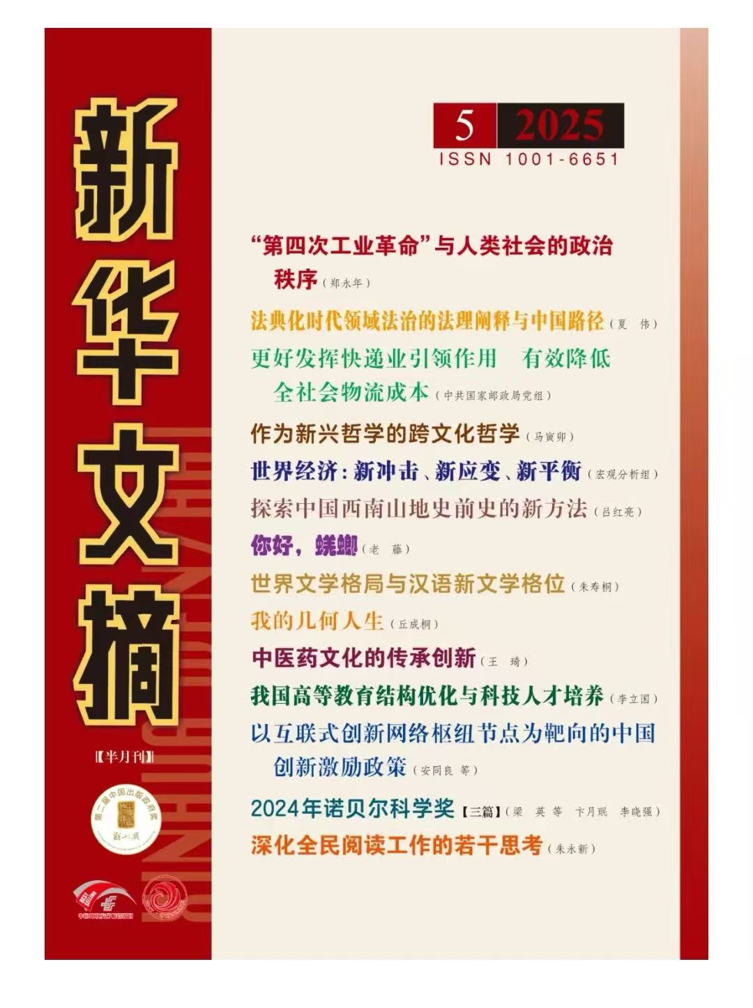 2025年第五期《新华文摘》以封面文章的形式全文转载了永利集团官网安同良教授的论文《以互联式创新网络枢纽节点为靶向的中国创新激励政策》,该文原载于2024年第10期《经济研究》。该论文同时被《中国社会科学文摘》2025年第二期全文转载。此外,还得到了香樟经济中文库、学术桥等媒体的转发推介。