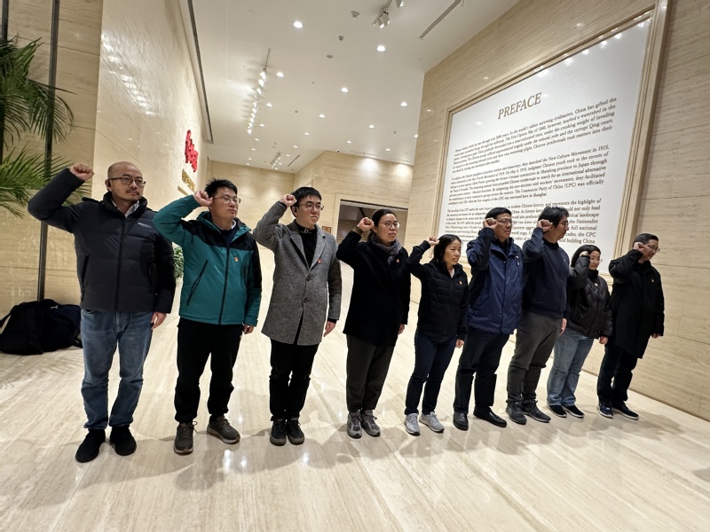 活动首站来到中国共产党人的精神家园——上海中共一大会址。支部成员们通过纪念馆内珍贵的历史文物、影像资料及全息投影场景复原,沉浸式回顾了中共一大召开的历史背景与中国共产党诞生的伟大历程。在回顾这段波澜壮阔的历史进程后,支部成员走进了庄严肃穆的宣誓大厅,全体党员面向鲜红党旗,在支部书记江静教授的领誓下,以铿锵之声重温入党誓词。“我志愿加入中国共产党……”铮铮誓言在纪念馆内回响,传递着新时代高校教师党员对党的信仰与忠诚。