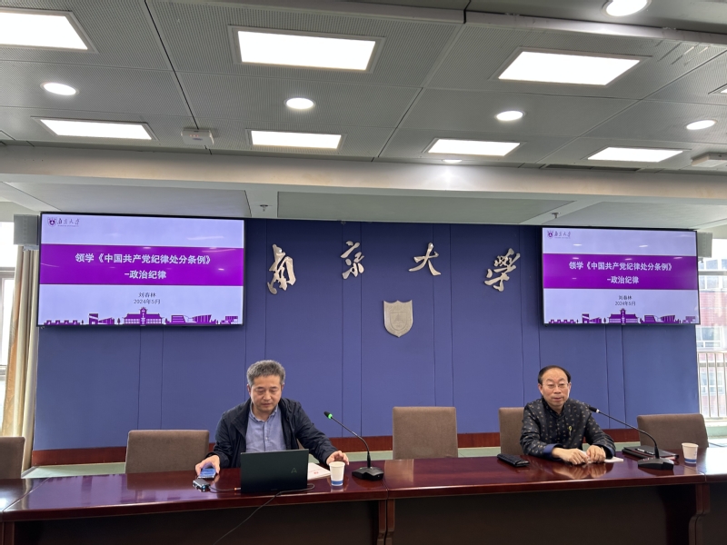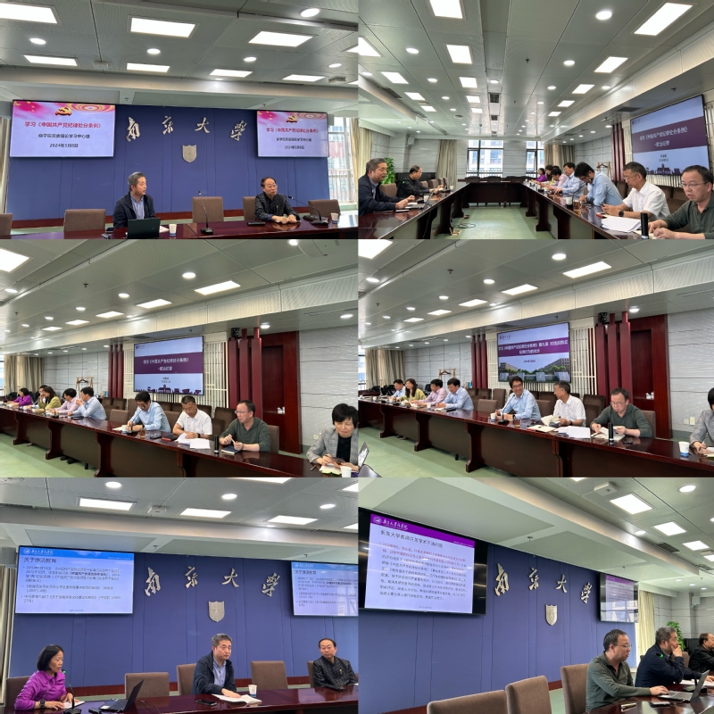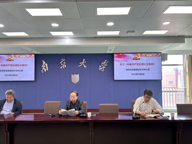院长安同良领学《条例》第七章《对违反组织纪律行为的处分》,重点就民主集中制原则、党内选举、干部选拔任用、职务职级晋升、涉外活动交往等条款进行解读和分析。安同良表示,《条例》是所有党员的“一面镜子”,党纪学习教育很有必要,也非常及时。广大党员特别是党员领导干部在学习和工作中要做到以纪为纲、依纪行事,忠诚、干净、担当,自觉维护党的权威和国家形象。郑江淮、马野青、孙宁华等领导干部结合高校实际和工作职责,分别对《条例》第八章、第十章、第十一章《对违反廉洁纪律行为的处分》、《对违反工作纪律行为的处分》、《对违反生活纪律行为的处分》的相关条目进行了领学和解读。他们表示,要始终坚定理想信念,时刻用党规党纪约束自己,不断提升党性修养。