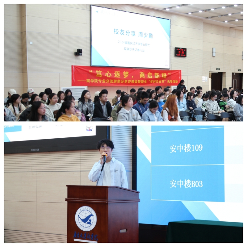 随后,各系所分享嘉宾分别在四个分会场进行分享。他们从朋辈的视角出发,详细介绍了各专业的特色亮点、学习内容、课程设置及未来发展方向,并结合自身的学习体验,帮助新生们更直观地了解各专业的特点,也为他们的分流选择提供了实际参考。经济学拔尖班同步开展了分享交流活动,2024级博士研究生段舒玺参与分享。