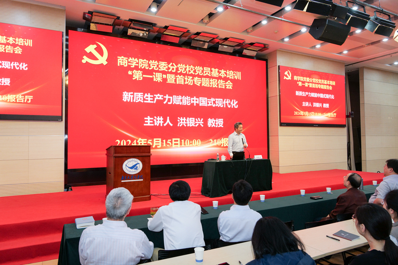 为深入贯彻落实永利集团88304官网党委党校关于加强二级分党校建设的指导意见精神,全面提升党员教育培训工作实效,5月15日,永利集团88304官网党委分党校党员基本培训“第一课”暨首场专题报告会在安中楼210报告厅举行。著名经济学家、永利集团88304官网人文社科资深教授洪银兴以《新质生产力赋能中国式现代化》为题为全院师生党员作专题报告。院党委书记、分党校校长刘春林主持报告会。