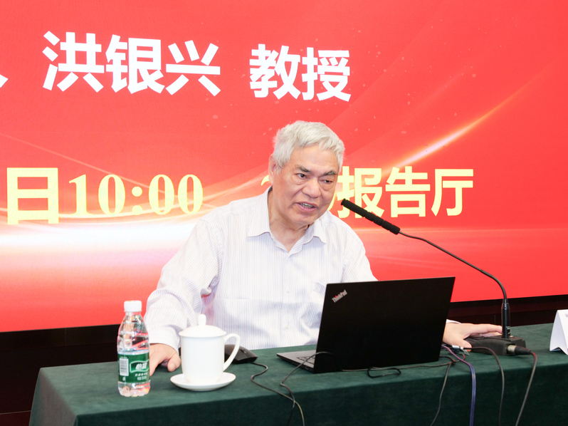 随后,洪银兴教授从新质生产力的提出及其内涵、新质生产力推动中国式现代化的主要场景、适应和促进新质生产力发展的新型生产关系三个方面全面系统探讨了新质生产力的内涵、特征及发展路径。他指出,新质生产力是科技生产力、绿色生产力、数字生产力,并广泛涉及人工智能、数字经济、新型工业化、城市现代化等前沿领域。专题报告站位高远、理论新颖,视野宏阔、内涵丰富,既是一场主题鲜明、生动精彩的党课报告,也是一堂内容深刻、联系实际的马克思主义政治经济学课程。