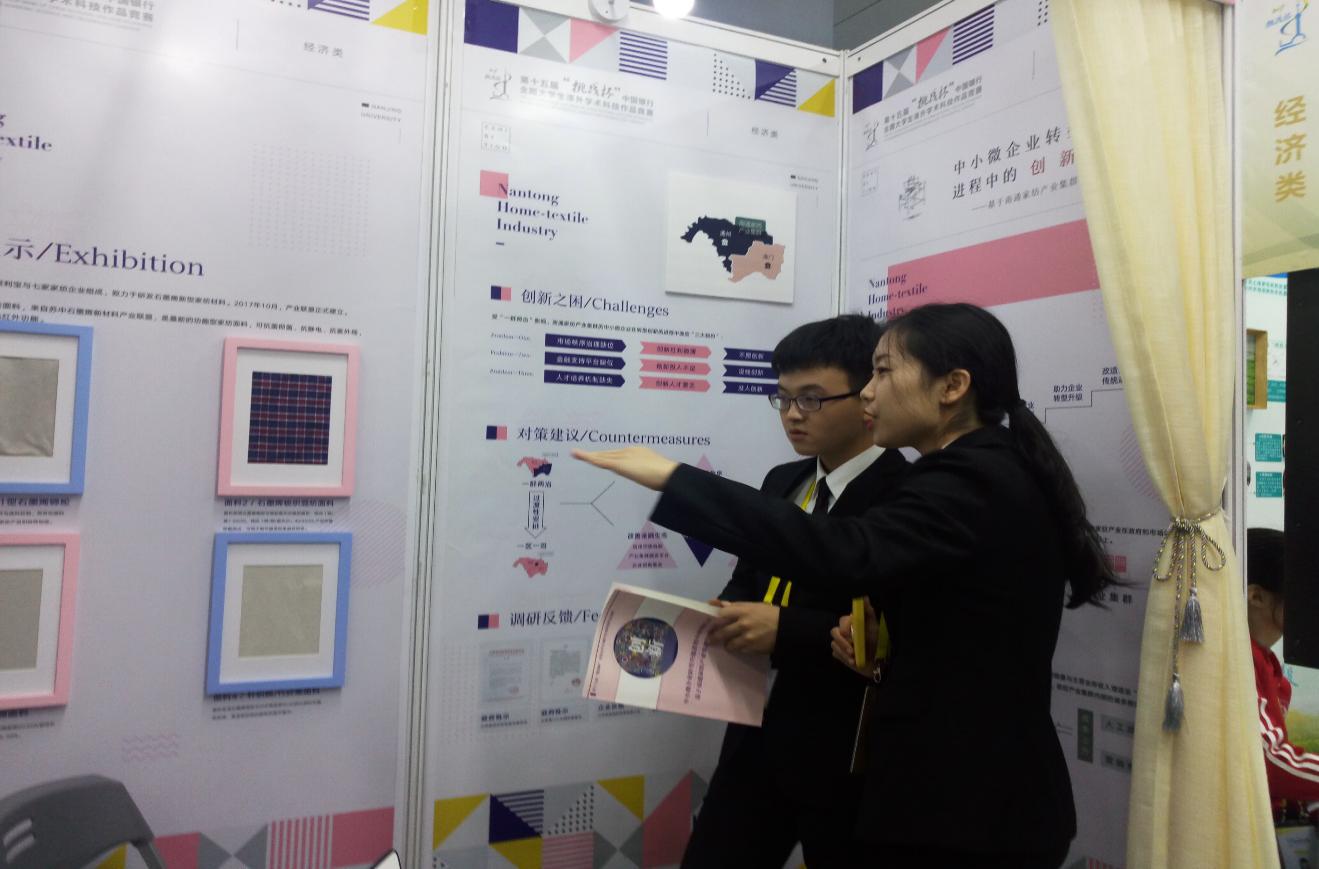 我校共有6个作品进入决赛,经过激烈角逐,我校以团体总分390分位列全国高校第五名,捧得“优胜杯”。永利集团官网本科学子参赛的“中小微企业转型升级进程中的创新之困——基于南通家纺产业集群的调研报告”项目荣获一等奖。
