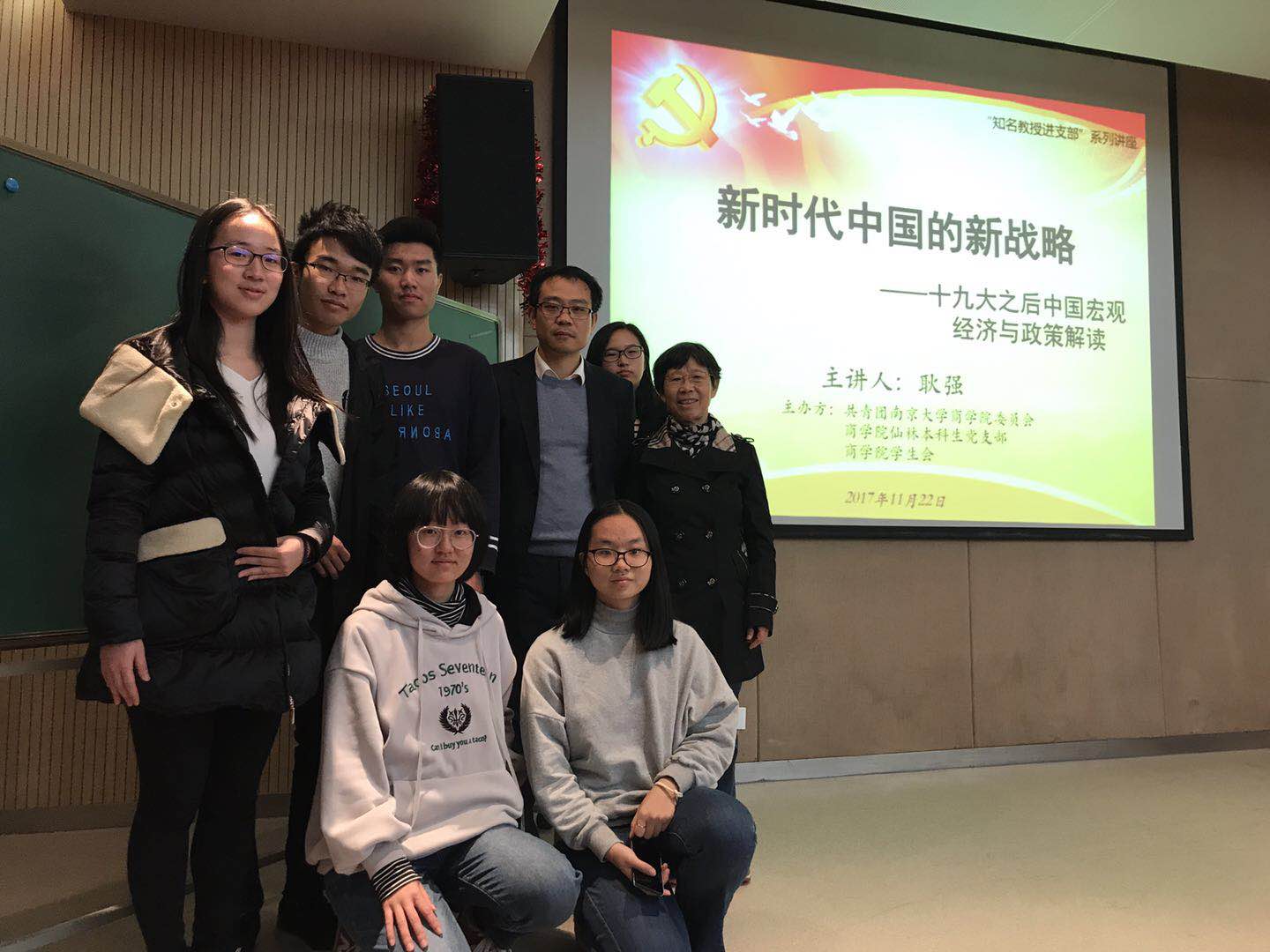 2017年11月22日下午于仙林校区电子科学与工程学院报告厅,永利集团88304官网教授、校党委理论讲师团成员耿强老师为永利集团88304官网本科生进行了“新时代中国的新战略——十九大之后中国宏观经济与政策的深刻解读”主题讲座。