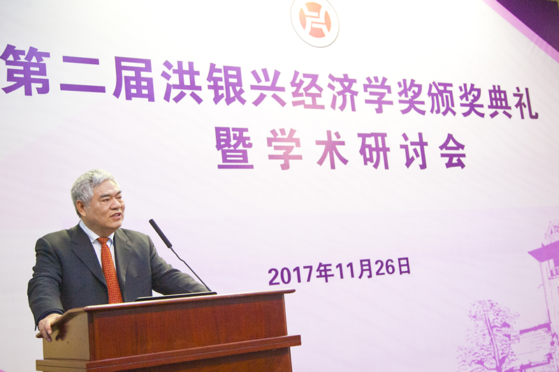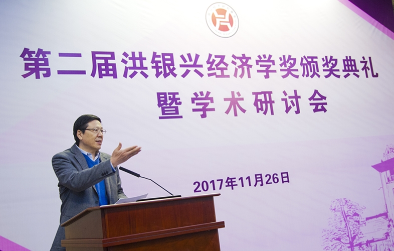 2017年11月26日,第二届洪银兴经济学奖颁奖典礼暨学术研讨会在永利集团88304官网安中楼成功举办。“洪银兴经济学奖”是由银兴经济研究基金于2016年设立,旨在鼓励青年经济学者推出更多富有创新性的原创研究成果,更好地融入中国特色的社会主义经济理论发展,推动中国经济学科的繁荣发展。该奖经个人申请、银兴经济研究基金成员推荐、洪银兴经济学奖评奖委员会评审,投票表决,产生获奖名单。