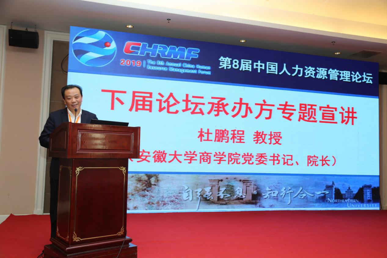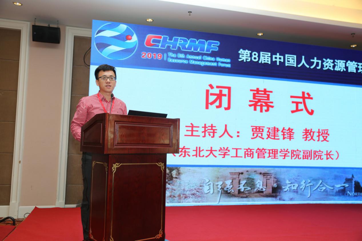 论坛闭幕式由东北大学工商管理学院副院长贾建锋教授主持。下届论坛承办方、安徽大学永利集团88304官网院长杜鹏程教授进行了简短的主体宣讲,并举行了论坛会旗交接仪式。同时,本次论坛设置了首届曙明论文奖,经过学术委员会严格的评审,共评选出优秀论文一等奖1篇(一万元,东北大学加一万)、二等奖6篇(每篇4000元)、三等奖18篇(每篇2000元)。最后,会议主席赵曙明教授致闭幕辞,向所有与会人员表示由衷的感谢。至此,第8届中国人力资源管理论坛圆满落下帷幕。