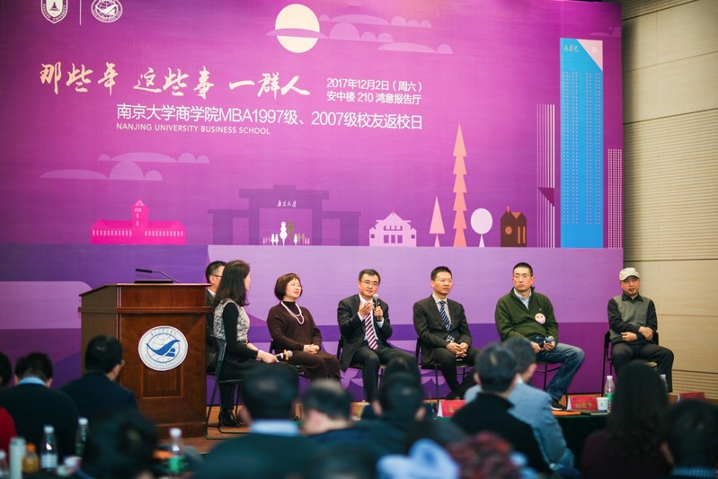 校友欢迎仪式过后,来自不同班级的校友代表们进行了圆桌交流论坛。由MBA联合会主席郭欢欢同学主持,邀请了97级雷典、徐勇华,07级汤宇、黄兴稳、卞国兴、陆涛校友以“缘聚南大 携手成长”为主题,围绕“MBA的变化、成长和展望”和大家进行了畅谈分享。