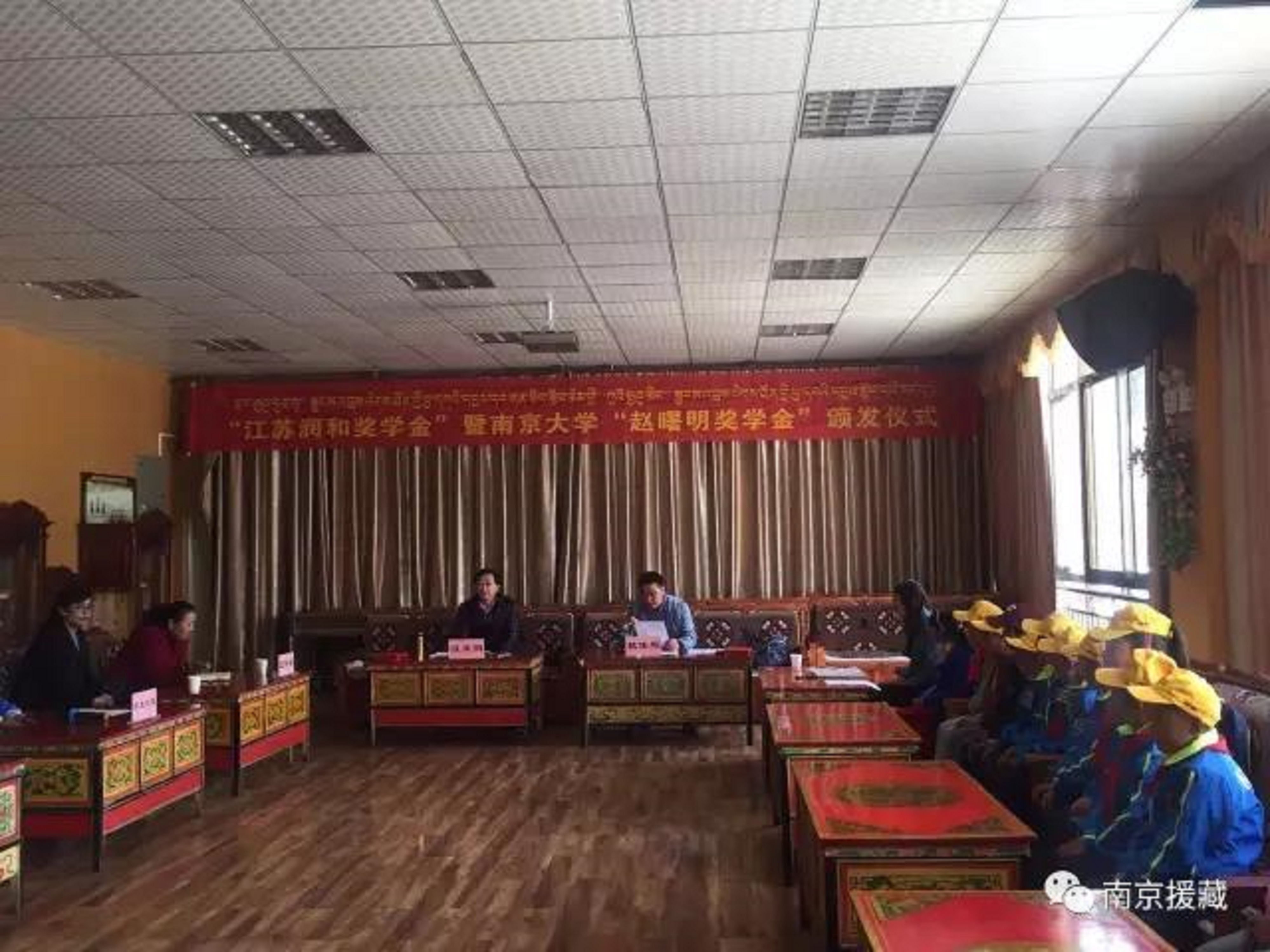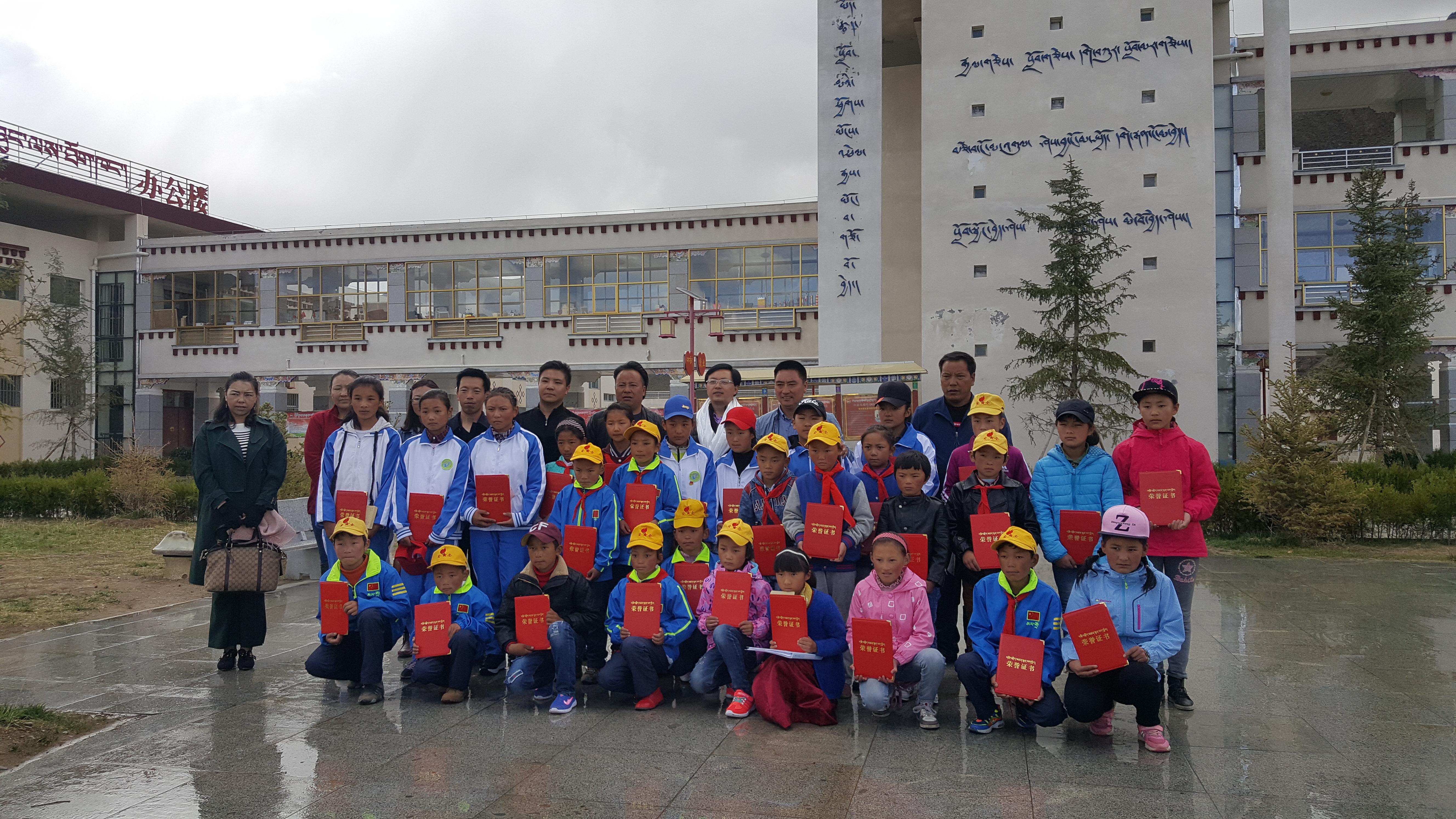 给墨竹工卡中小学第3届“曙明奖学金”获得者颁奖