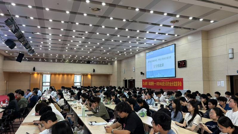 王宇伟对同学们即将完成大一学业,进入学院大家庭表示热烈欢迎。他表示,学院始终加强与书院的联动,通过提供多元化活动和平台,帮助同学们更好适应大学生活、开展学科探索、进行早期科研。希望同学们在今后的学习工作中努力创造新知、拓展才能,引领未来。贾良定从院系专业、学科特点、培养特色、分流方案四个方面为同学们详细介绍了分流过程。他通过演示分流现场的基本流程,帮助同学们更好理解相关规则,并注意相应事项。此外,他还分析了如何根据个人兴趣、能力和未来规划,科学选择适合自己的专业与职业发展路径。