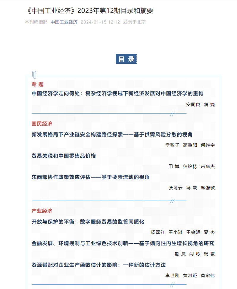 来源:《中国工业经济》2023年第12期