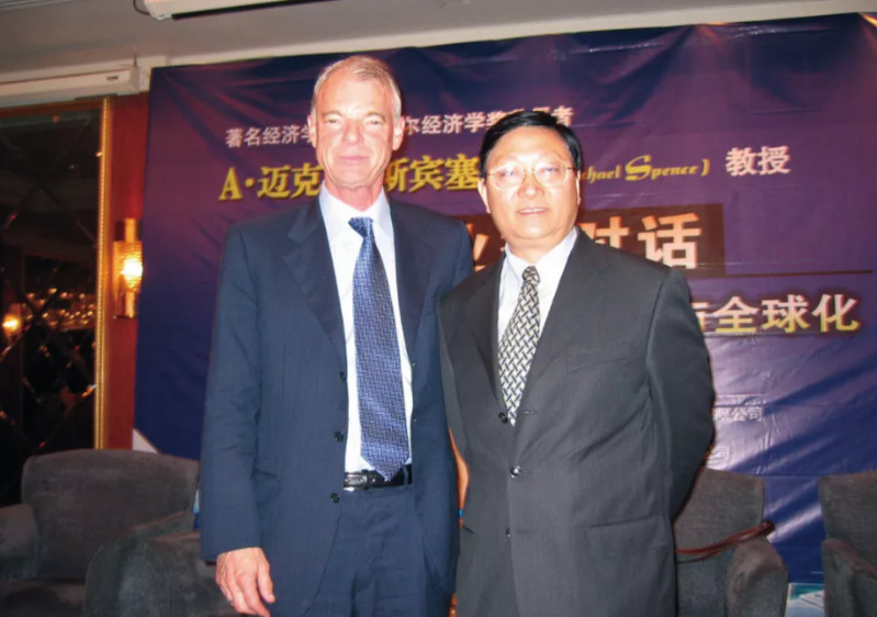 2002年与诺贝尔经济学得主、斯坦福大学永利集团88304官网著名经济学家迈克尔·斯班塞教授