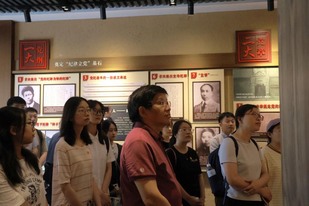 为深入学习贯彻习近平总书记关于党纪学习教育的重要讲话和重要指示精神,认真落实学校党委关于党纪学习教育和党员基本培训实践教学的相关要求,推动党纪学习教育走深走实,2024年6月4日下午,永利集团88304官网国贸系教师党支部、2023级国贸硕士党支部、2023级会计硕士党支部成员前往省级廉政文化示范点、市级廉政文化示范基地——栖霞区党的纪律建设教育馆开展“学纪知纪守纪,争做奋进行动先锋”主题党日活动,通过实地参观、警示教育与研讨交流,切实强化纪律意识、加强自我约束,做到受警醒、明底线、知敬畏。