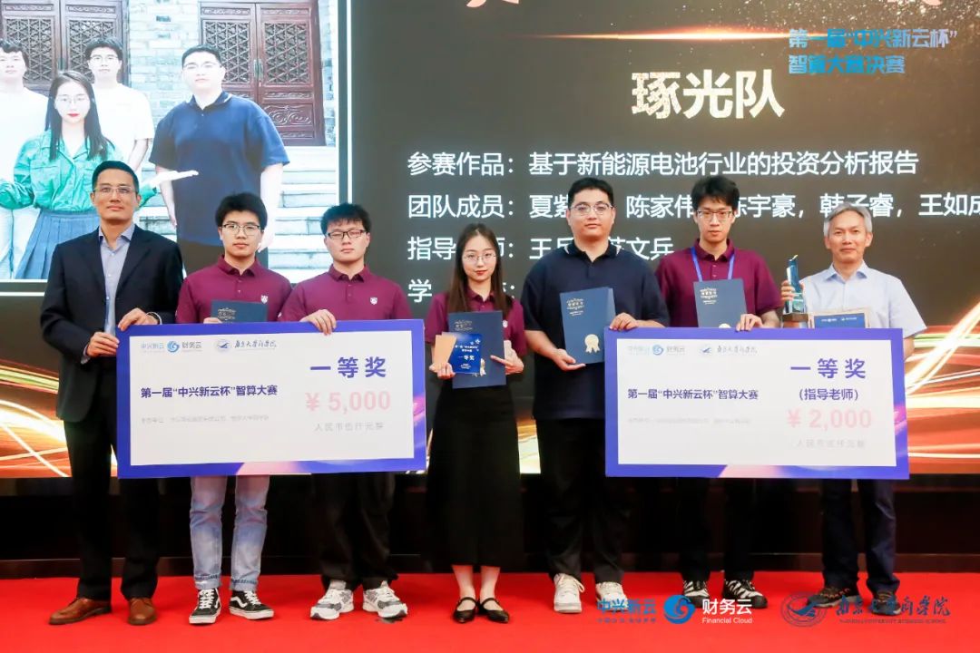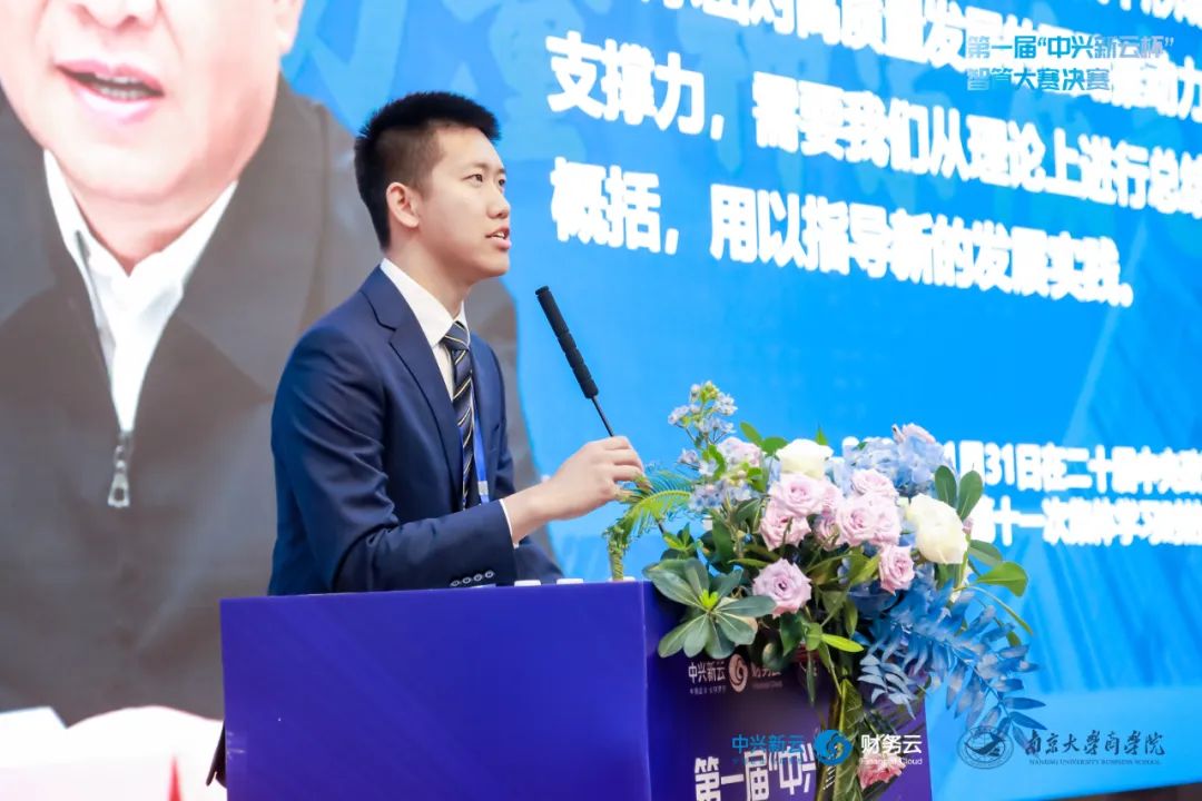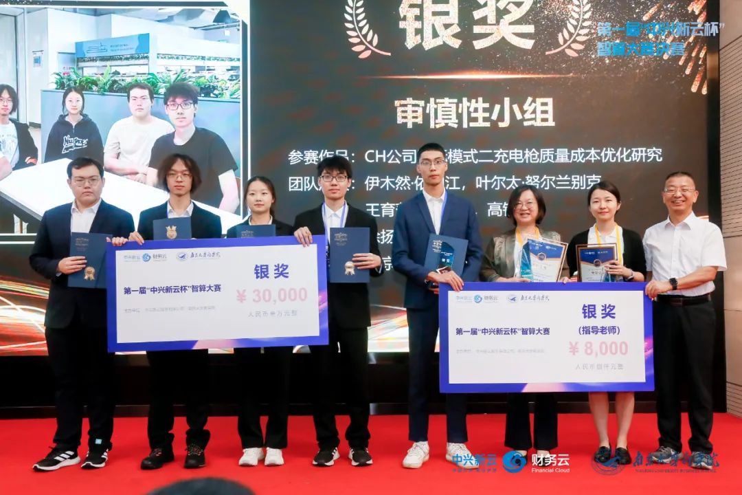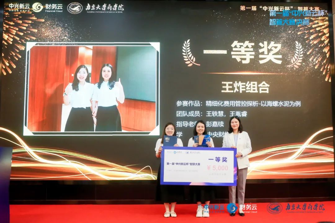 在紧张激烈的比拼之后,迎来了万众瞩目的颁奖典礼。最终,永利集团88304官网与东南大学联合组队的数字化先行者队凭借出色的表现荣获金奖(特等奖),由中兴新云总裁陈虎博士颁奖并合影;北京航空航天大学的审慎性小组队获得银奖(特等奖),由教育部“长江学者奖励计划”特聘教授、永利集团88304官网副院长贾良定教授颁奖并合影;中国传媒大学的双人成行队获得铜奖(特等奖),由智能财务研究院院长、中国会计学会常务理事刘勤教授颁奖并合影;中央财经大学的王炸组合队、永利集团88304官网的琢光队以及西北工业大学的人民当家作组队队获得了一等奖,分别由中兴新云副总裁赵旖旎女士、永利集团88304官网会计学系系主任林树教授、南京审计大学会计学院院长温素彬教授颁奖。个人风采奖通过现场投票的方式产生,永利集团88304官网硕士研究生王贝贝同学获得最佳风采奖,众望所归,掌声不断。
