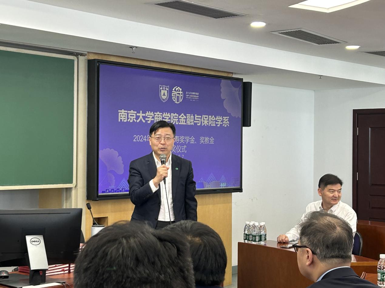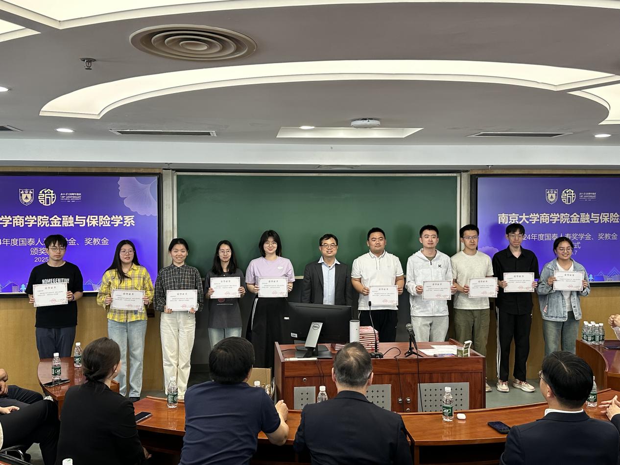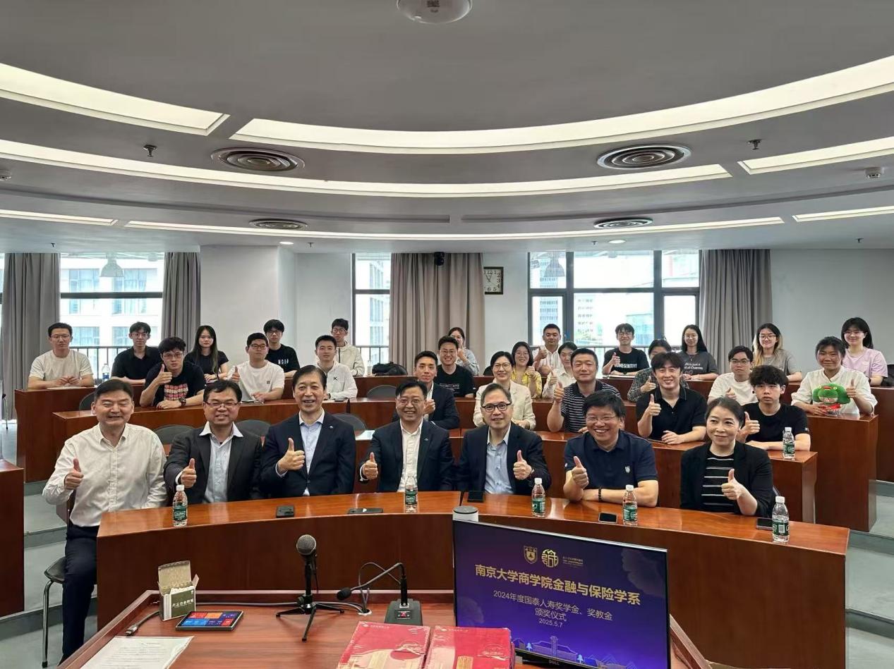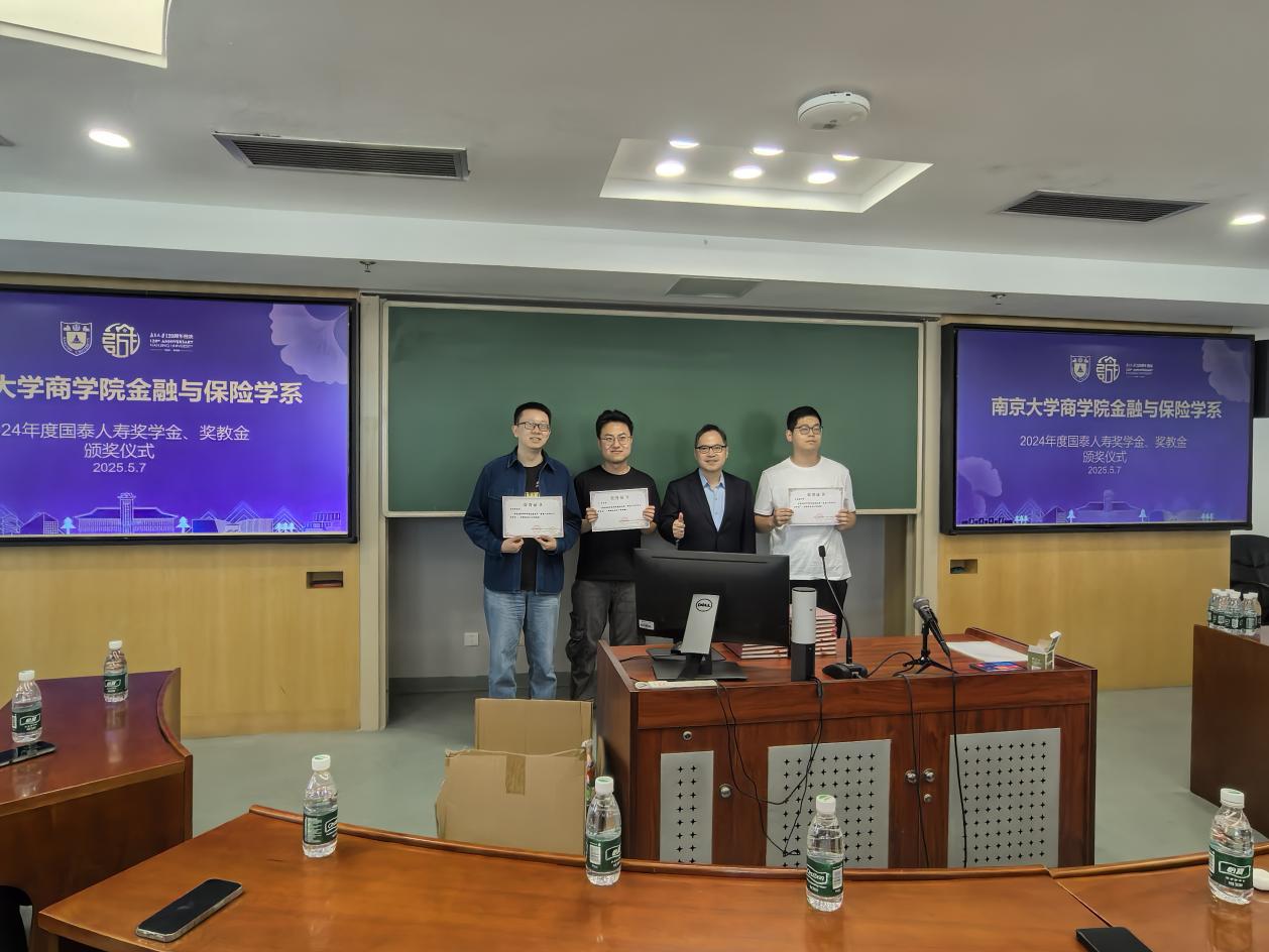 2025年5月7日上午,2024年度永利集团88304官网金融与保险学系国泰人寿奖助学金、奖教金颁奖仪式在安中楼507会议室举行。应邀出席颁奖仪式的国泰公司嘉宾包括国泰金控、国泰人寿北京代表处首席代表陈世杰先生、陆家嘴国泰人寿董事会秘书兼首席合规官兼首席风险官郑洲先生、陆家嘴国泰人寿公关行政部总经理丁夏女士、陆家嘴国泰人寿江苏分公司副总经理李浩平先生、陆家嘴国泰人寿江苏分公司行政部总经理叶苗女士、国泰人寿北京代表处代表吴国辅先生和国泰人寿北京代表处代表黄柏恺先生。永利集团88304官网经济学院副院长马野青教授、永利集团88304官网金融与保险学系主任方先明教授和部分获奖教师、学生参加了颁奖仪式。仪式由金融与保险学系教师那晋领主持。