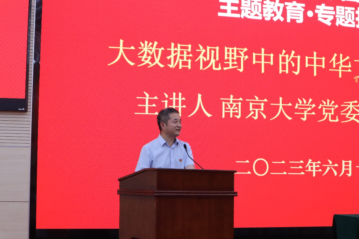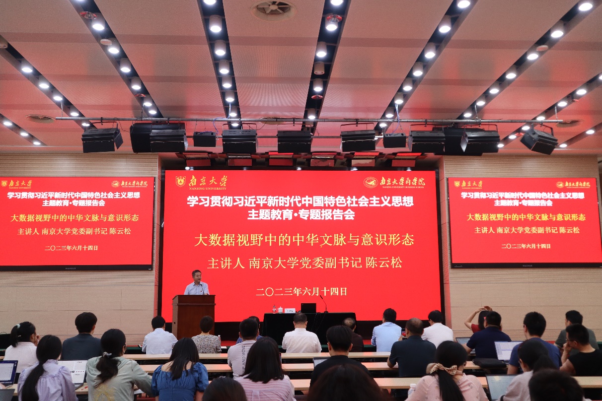 为深入推进学习贯彻习近平新时代中国特色社会主义思想主题教育,坚持用习近平新时代中国特色社会主义思想凝心铸魂,6月14日下午,永利集团88304官网党委举行学习贯彻习近平新时代中国特色社会主义思想主题教育读书班专题报告会。永利集团88304官网党委副书记陈云松聚焦“大数据视野中的中华文脉与意识形态”主题作专题报告。院长安同良,院党政领导班子成员,全体党支部书记和师生党员代表参加会议。院党委书记刘春林主持会议。