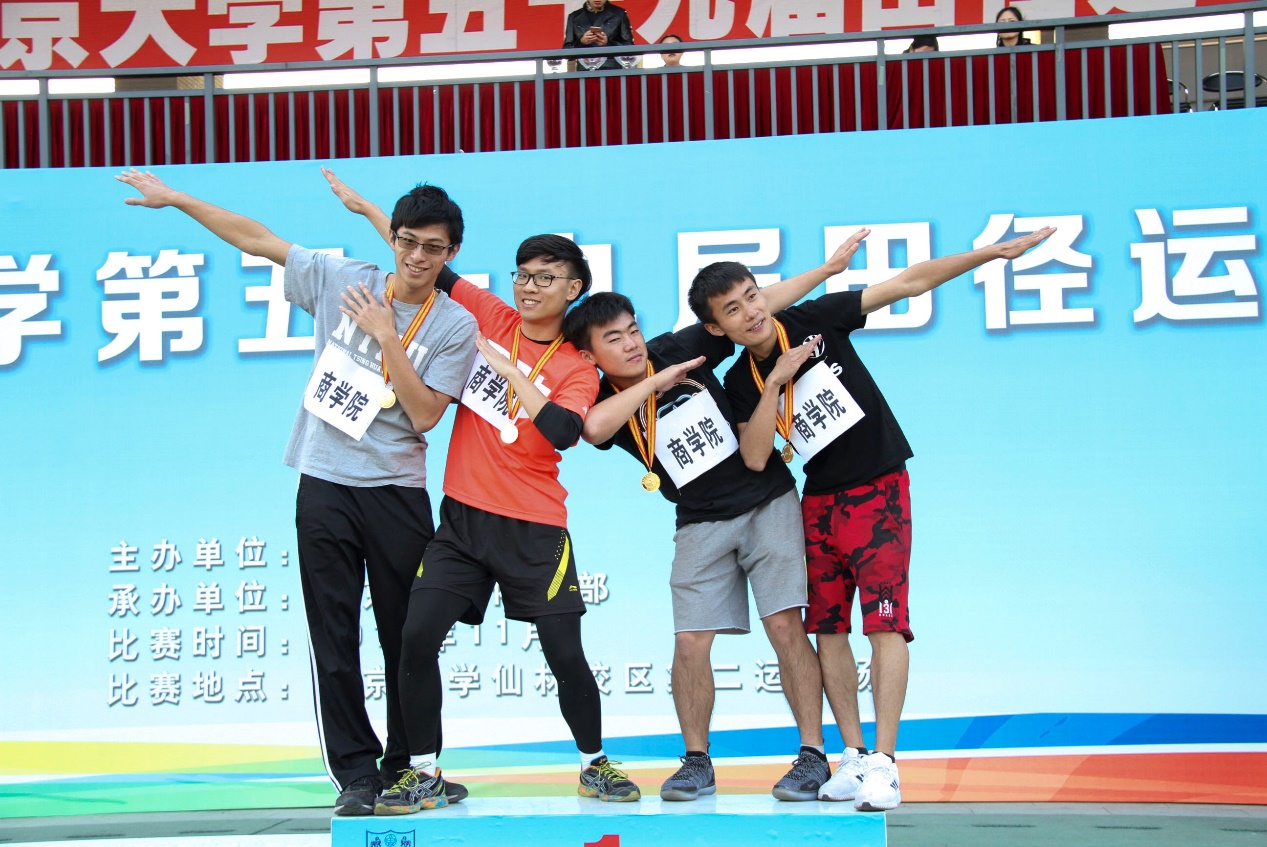 在男子赛场,运动员同样表现抢眼。高梓程同学获得男子乙组100米第三名。岳阳晨获男子400米第二名。在1500米赛场上,宗昊同学获第三名。在男子4*100接力项目中,商院以绝对优势斩获第一。在男子跳远、铅球项目中,运动员继续稳定的发挥,其中袁润乾、李济楷同学表现突出,分获男子跳远冠军、铅球冠军。童心宇获掷实心球亚军。