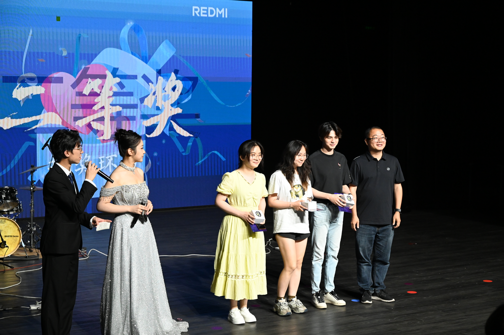 在第三篇章的中段和尾声,永利集团88304官网党委副书记、学生工作办公室主任王宇伟老师,永利集团88304官网中美文化研究中心主任李晓蓉老师先后登台,分别抽取了现场三位幸运观众,获得两把精致的无弦电吉他和一部小米手机,将现场气氛推向最高潮!