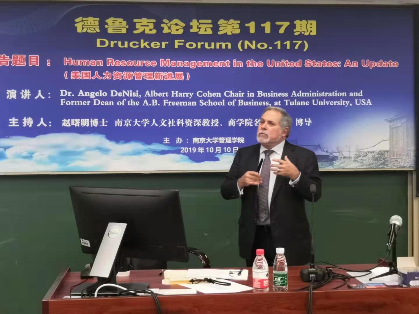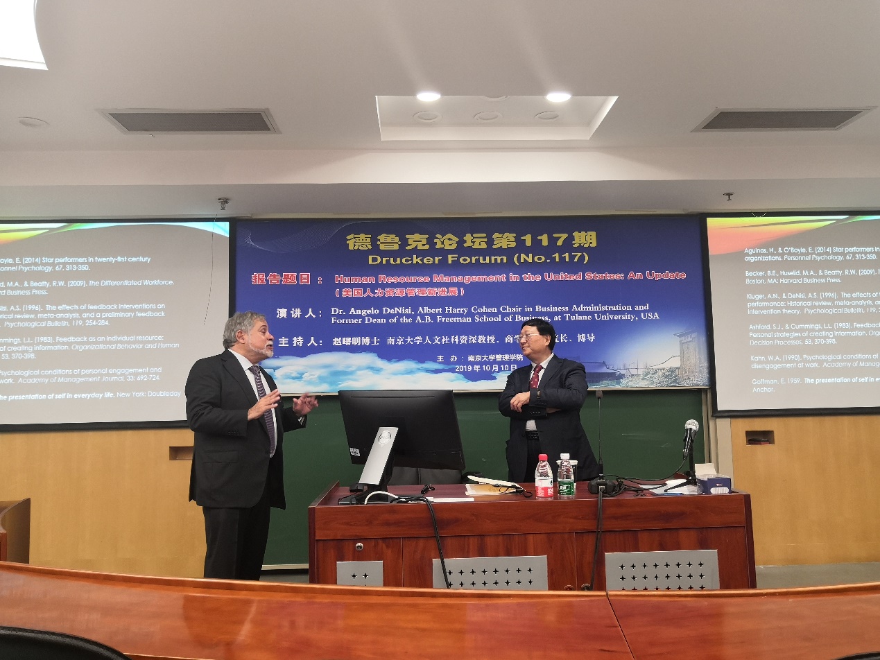 2019年10月10日下午15点,德鲁克论坛第117期在安中楼501教室顺利举行。美国杜兰大学管理学院前院长、赫伯特·海曼(HerbertHeneman)终身贡献奖、SIOP杰出生命科学贡献奖、杜兰弗里曼永利集团88304官网的杰出教学奖获得者Angelo DeNisi教授受邀作了题为“Human Resource Managementin the United States:An Update”的主题报告。论坛由永利集团88304官网人文社会科学资深教授、永利集团88304官网名誉院长赵曙明博士主持。30多位教师、博士生和硕士生参加了本次论坛。