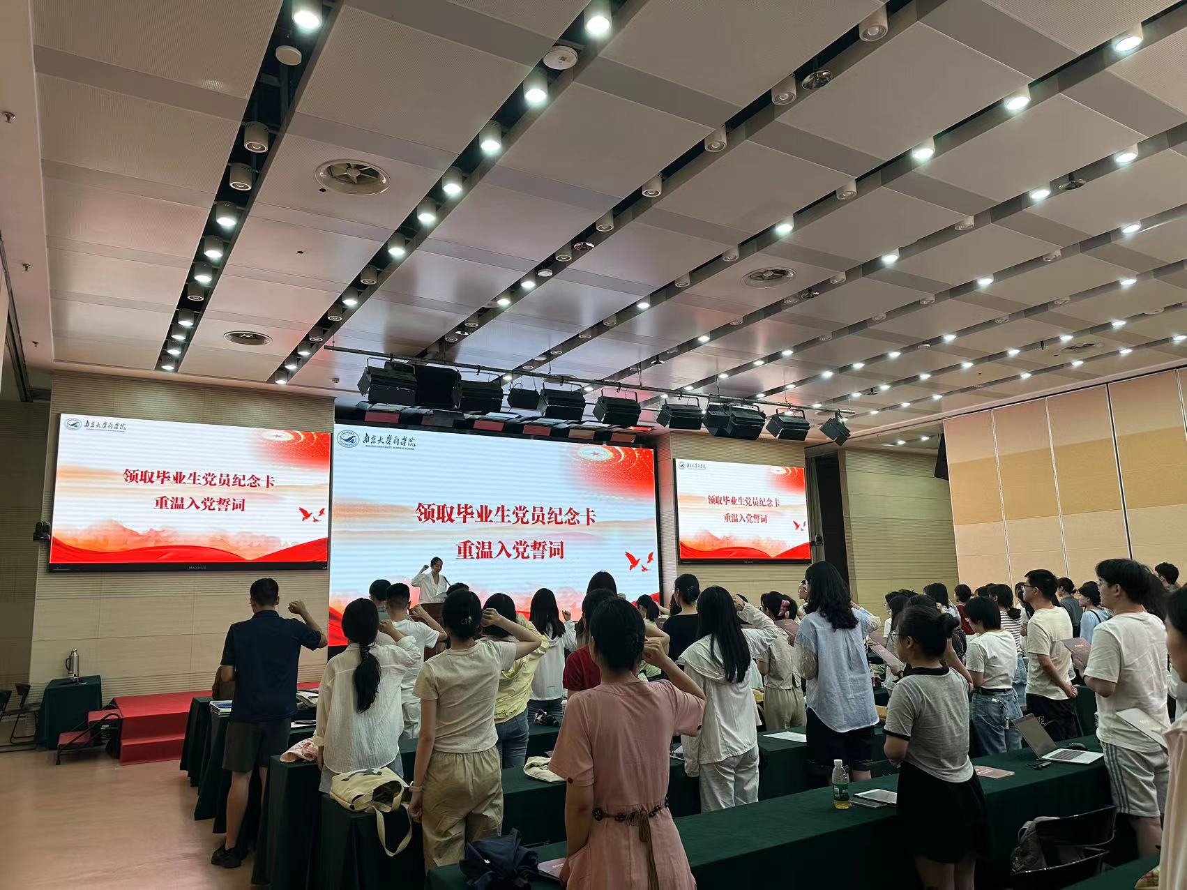 王宇伟对全体毕业生党员开展党性教育和党纪教育,进一步强化毕业生党员的政治意识、身份意识和廉洁意识。他强调,全体毕业生党员要深入学习贯彻落实《条例》,主动学纪、知纪、明纪、守纪,做到忠诚干净担当。他希望毕业生党员坚定理想信念,加强党性修养,真正把遵规守纪刻印在心,把纪律要求内化为自觉行动。他寄语毕业生党员要始终牢记“诚朴雄伟,励学敦行”的校训,在推进中国式现代化中挺膺青春担当,争做时代先锋。同时,他希望大家作为优质校友与母校“心心相映”,持续关心学校和学院的发展。
