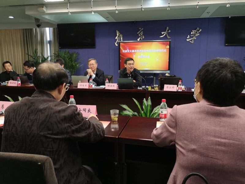2020年11月7日,“社会主义基本经济制度与国家治理现代化”专题研讨会在永利集团88304官网安中楼举行。永利集团88304官网原党委书记洪银兴教授、永利集团88304官网经济学院院长安同良教授、中国社科院经济所副所长胡乐明教授、南开大学经济学院何自力教授、中国经济出版社毛增余社长、四川大学经济学院院长蒋永穆教授、北京大学经济学院方敏教授、南开大学马克思主义学院副院长王生升教授、中国社科院马克思主义学院侯为民教授、中国社科院马克思主义学院张建刚教授、中国社科院马克思主义学院杨静教授、中国社科院经济所张旭教授、云南大学人事处长,经济学院张林教授、中国社科院经济所杨虎涛教授、中国政法大学马克思主义学院执行院长邰丽华教授、华北电力大学马克思主义学院宁阳教授、吉林大学中国国有经济研究中心主任李政教授、曲阜师范大学经管学院院长刘刚教授、上海财经大学马克思主义学院丁晓钦教授、浙江大学马克思主义学院卢江副教授、永利集团88304官网经济学院桂林副教授出席了会议。专题研讨会由永利集团88304官网经济学院副院长葛扬教授主持。